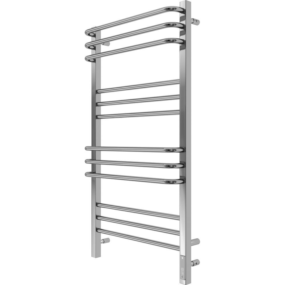 Полотенцесушитель имеет габариты 53х100 см и подключается к электрической сети через кабель с вилкой или может быть скрыто вмонтирован в стену, в зависимости от вашего выбора. Сушитель сухого типа оснащен нагревательным кабелем, который поддерживает стабильный температурный режим и обогрев поверхности до 2.5 м². Прибор подвесной, что экономит пространство, а его подключение расположено справа для удобства монтажа.