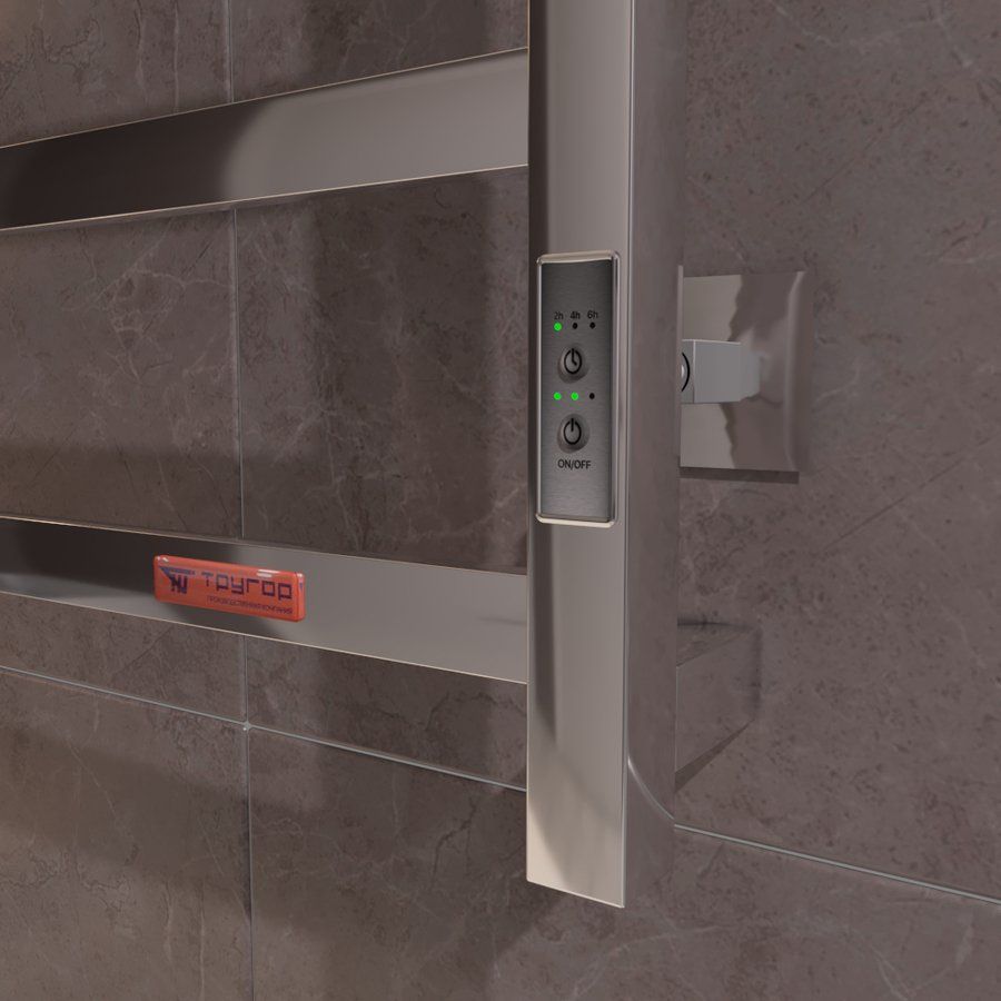 Полотенцесушитель электрический Тругор Пэк 20 80x50 — это стильное и практичное решение для вашего дома, которое обеспечивает эффективный обогрев и быструю сушку полотенец. Данный полотенцесушитель изготовлен из высококачественной нержавеющей стали AISI 201, что гарантирует долговечность и устойчивость к коррозии. Его уникальная конструкция с вертикальными профильными трубами размером 25х25 мм и горизонтальными вставками 25х10 мм придаёт изделию современный вид. Используемый в устройстве греющий кабель аналогичен тем, что применяются в системах «теплого пола», это обеспечивает равномерное распределение тепла по всей поверхности.