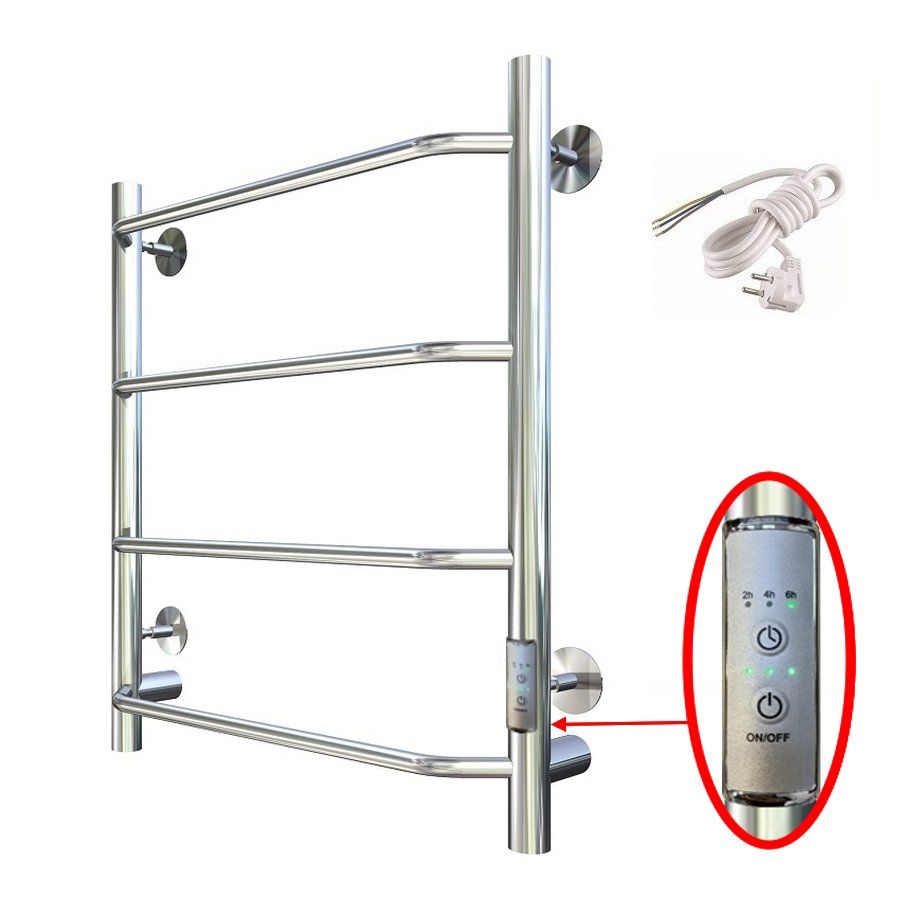 Полотенцесушитель Тругор Пэк 6 60х50 имеет габариты 55,4x60 см, что делает его компактным и мощным. Изделие легко подключается к сети через кабель с вилкой либо скрытым монтажом в стене. Продукт отличается интегрированным световым индикатором и паяной конструкцией труб, обеспечивающей надежность исполнения. Благодаря функции автоматического отключения при нагреве и таймеру на 2 и 4 часа, он позволяет экономить электроэнергию и предотвратить перегрев.