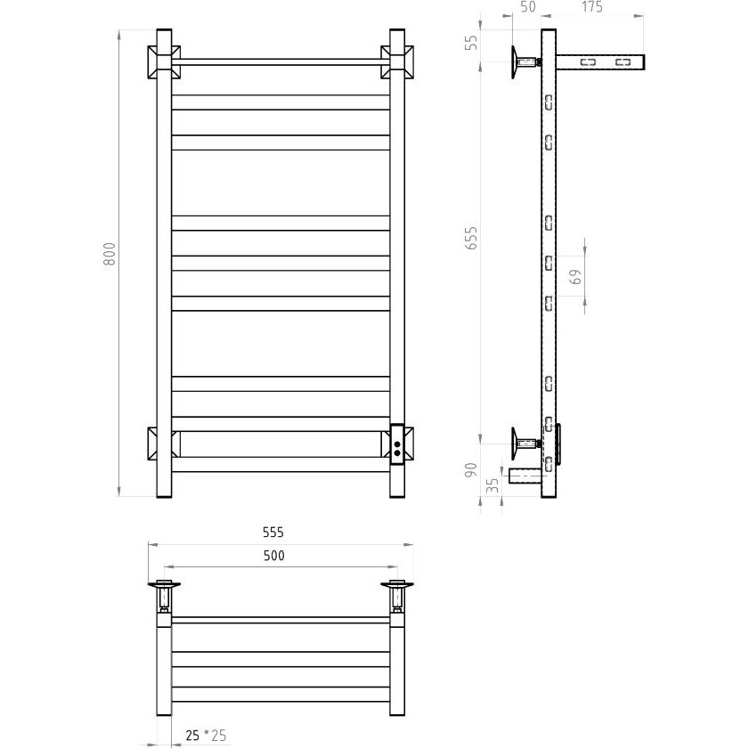 Полотенцесушитель имеет размеры 55,5x80 см и предназначен для обогрева площади до 5.64 м2. Максимальная мощность — 60 Вт, что позволяет надежно и экономично обогревать помещение. Он может подключаться к электрической сети через кабель с вилкой, либо скрыто в стене. Конструкция подвесная, с полкой для дополнительного удобства. Гарантия на изделие составляет 1 год, что гарантирует его долговечность и качество.