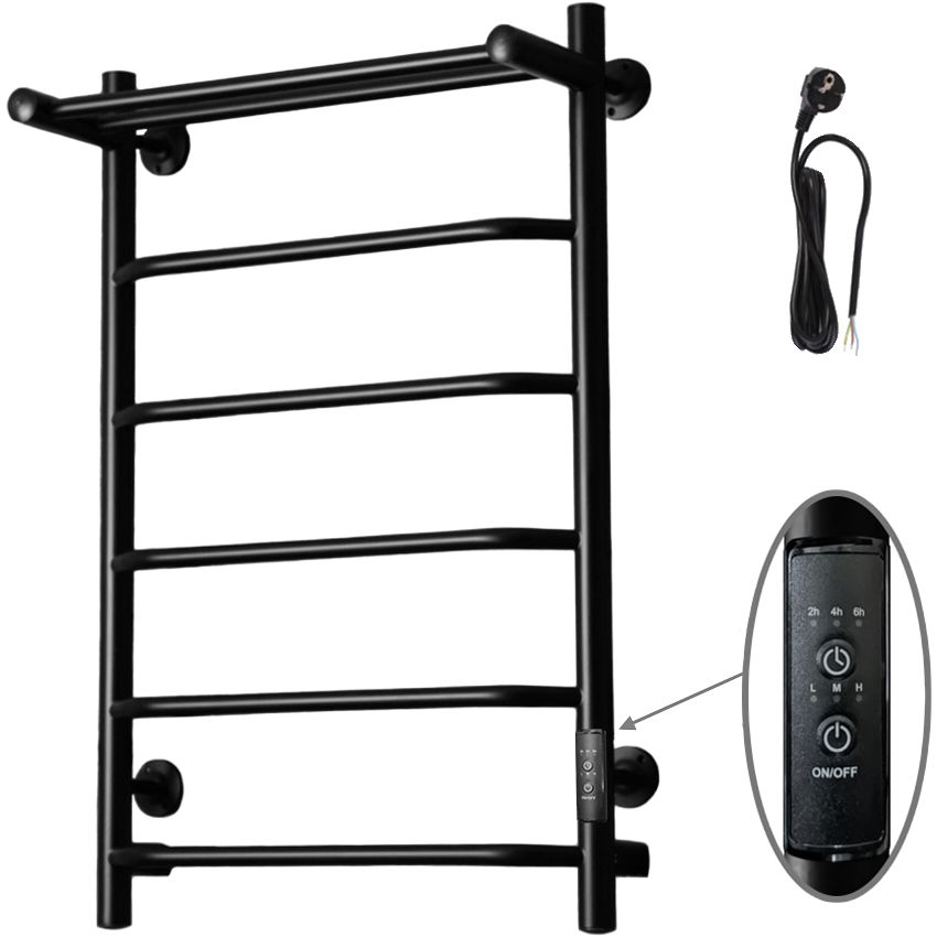 Полотенцесушитель электрический Тругор Пэк сп 6 П 80х50 в стильном черном исполнении — это современное решение для вашей ванной комнаты. Изготовленный из прочной углеродистой стали, он оснащен специальным греющим кабелем, напоминающим принцип работы теплого пола. Включенный полотенцесушитель поддерживает комфортную температуру в диапазоне 45-55 градусов, делая вашу ванную комнату уютной и теплой.