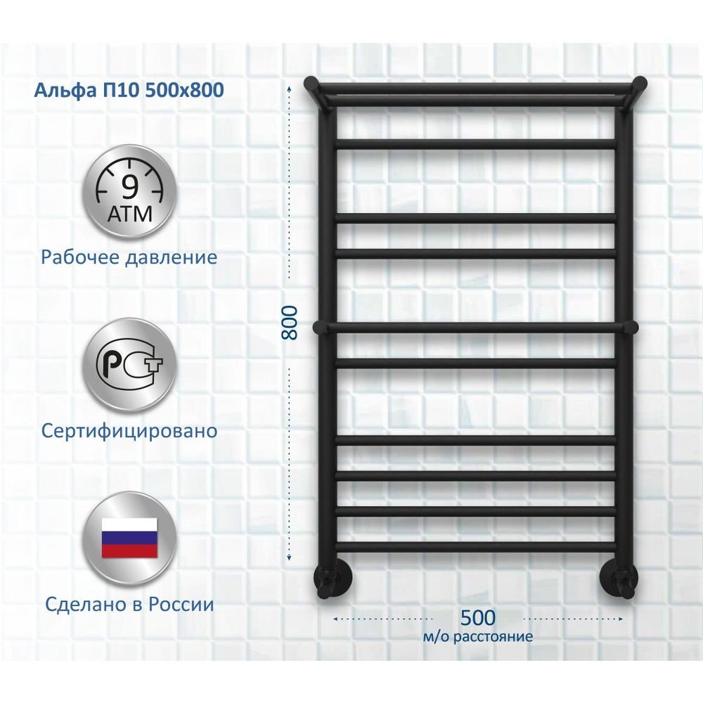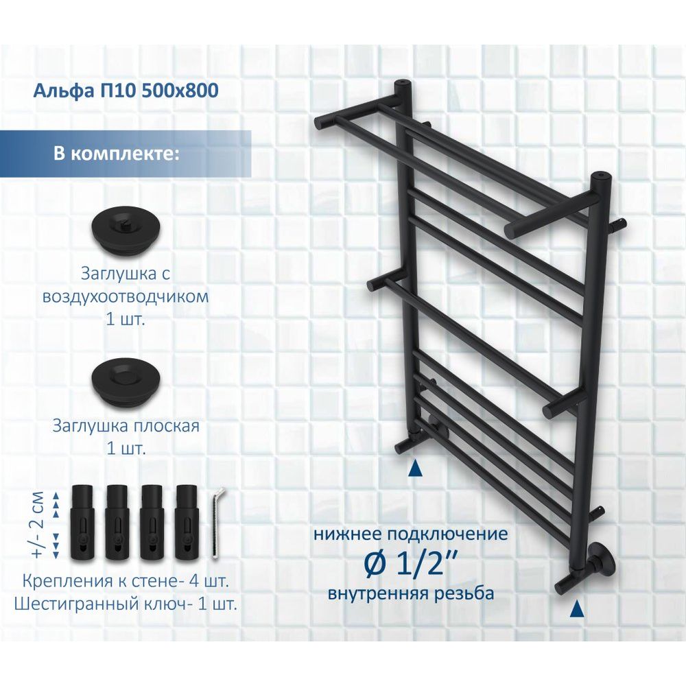 Водяной полотенцесушитель Акватек Альфа П10 50x80 в модном черном муаре — это идеальное сочетание функциональности и современного дизайна для вашей ванной комнаты. Он не только эффективно выполняет свою основную функцию, согревая пространство, но и становится стильной частью интерьера. Его элегантный профиль привнесет в вашу ванную нотку изысканности и уюта.