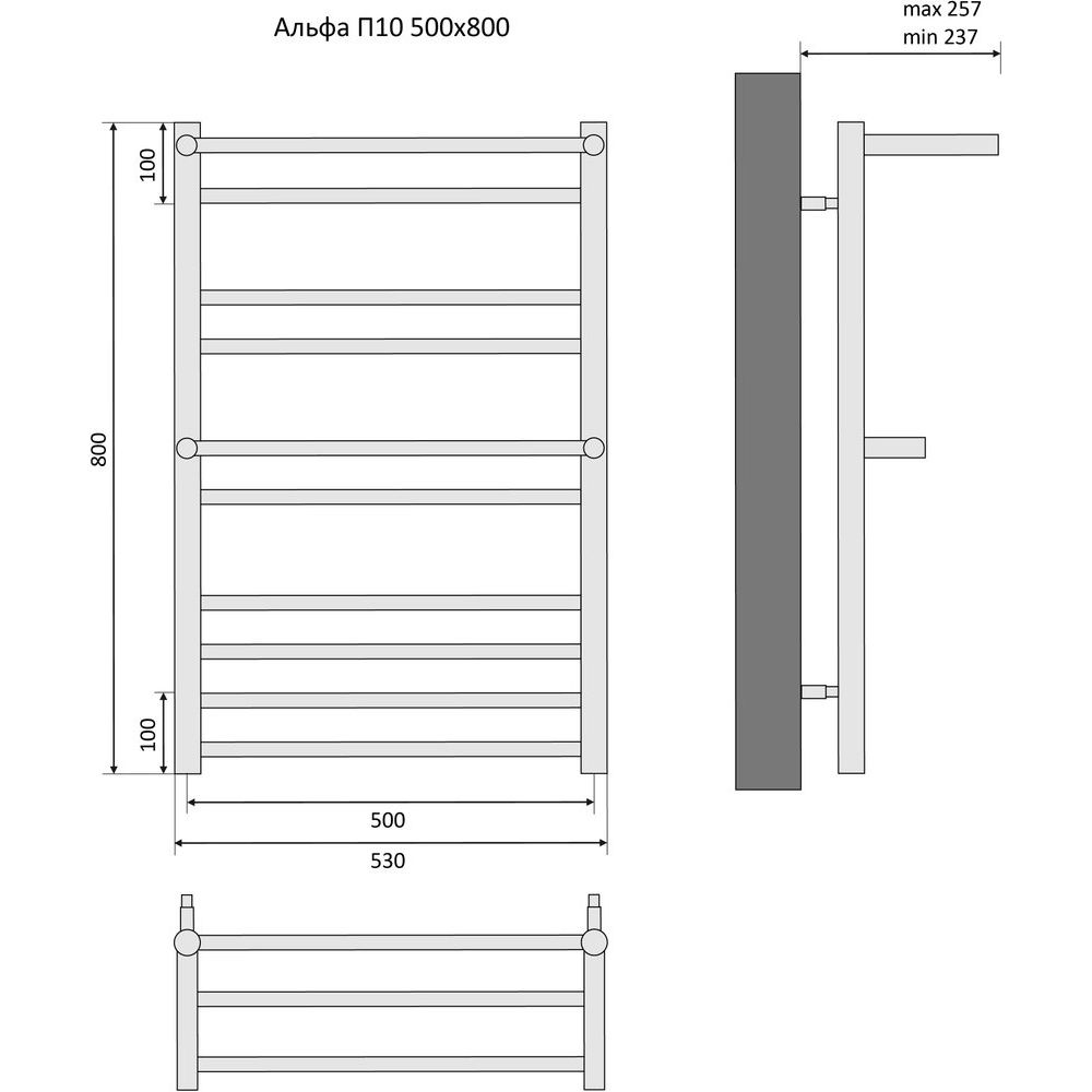 Полотенцесушитель Акватек Альфа П10 имеет профиль ребер с диаметром 18 мм и круглые вертикальные стойки диаметром 32 мм. Габариты изделия составляют 53x80 см, а межосевое расстояние — 50 см, что делает его идеальным выбором для стандартных размеров ванной комнаты. Способен обогревать площадь до 3.5 м2. Изготовлен из нержавеющей стали, он готов к установке на стене и поставляется с креплением, что значительно упрощает процесс монтажа.