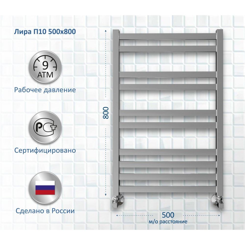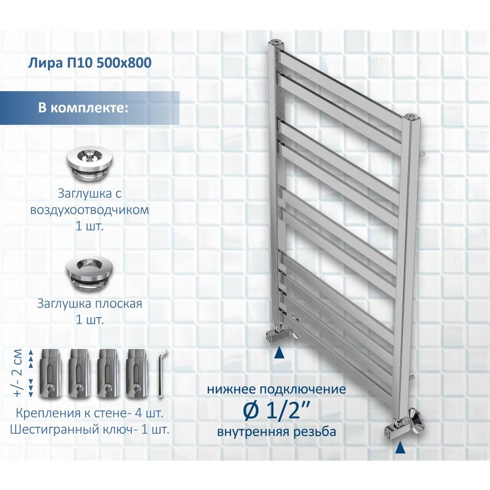 Полотенцесушитель "Акватек Лира П10" обладает габаритами 53x80 см и межосевым расстоянием в 50 см, что позволяет эффективно прогревать пространство. Прямоугольный профиль ребер с размерами 30x10 мм и квадратные вертикальные стойки 30x30 мм придают изделию современный и стильный вид. Система подключения гибко поддерживает как горизонтальное, так и диагональное подключение, обеспечивая удобство установки. Модель поставляется с креплениями, чем облегчает монтаж и ввод в эксплуатацию. Гарантия на изделие составляет 10 лет, что подтверждает его надежность и качество.