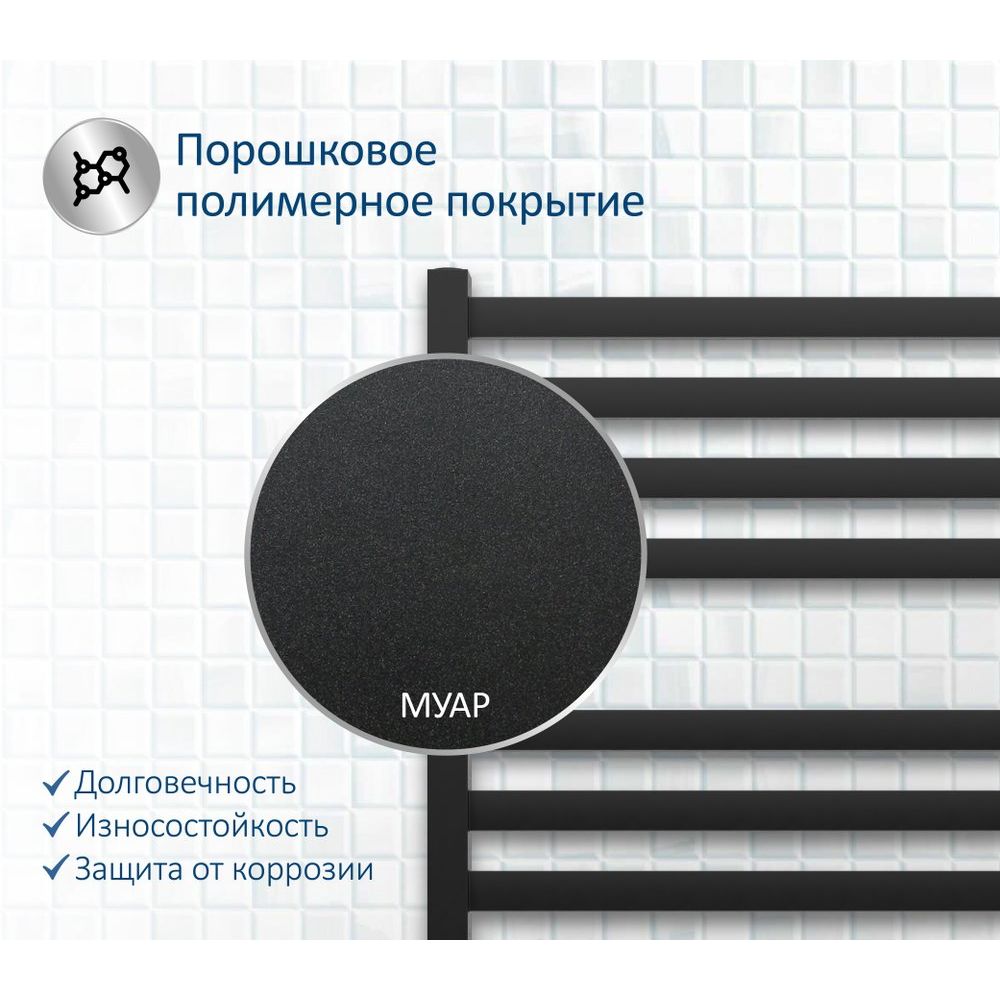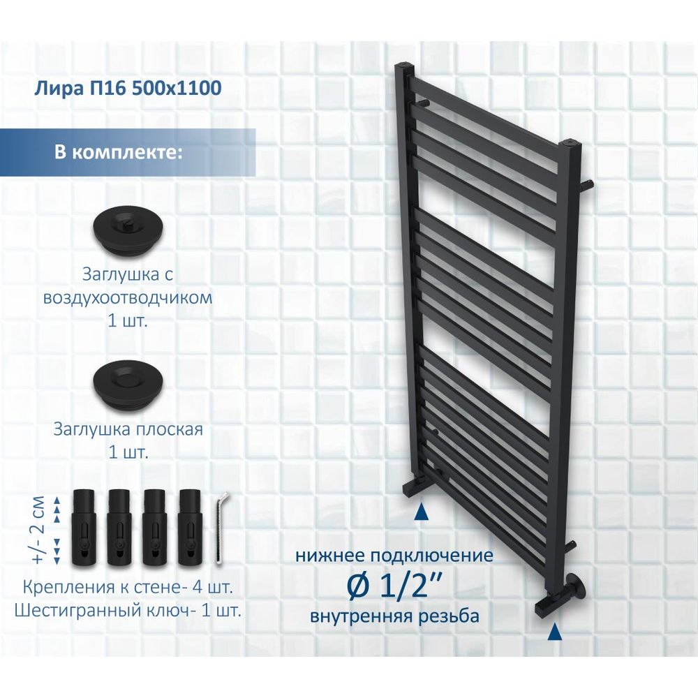 Полотенцесушитель водяной Акватек Лира П16 50x110 в изысканном черном муаре — это не просто элемент интерьера, но и функциональное решение для вашего санузла. Выполненный из нержавеющей стали, этот стильный аксессуар не только согреет ваши полотенца, но и создаст уют в ванной комнате. Элегантный дизайн с прямоугольными ребрами и квадратными стойками подчеркнет индивидуальность любого интерьера. Устройства от бренда Акватек предлагают гармоничное сочетание современного стиля и высокой надежности.