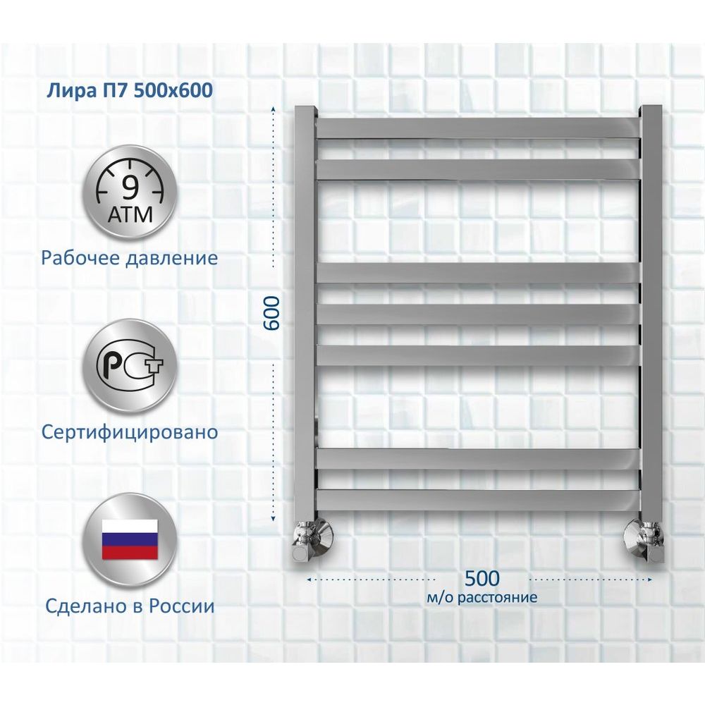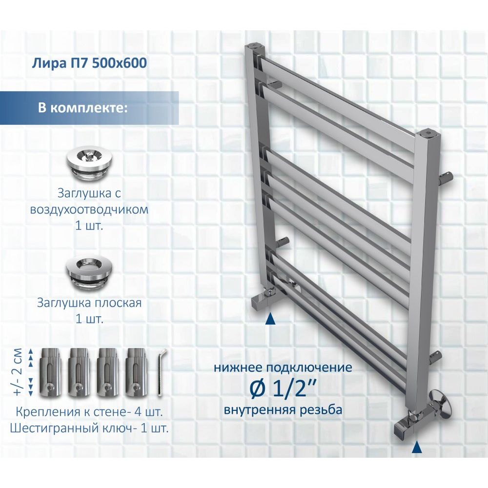 Полотенцесушитель Акватек Лира П7 размером 53х60 см подходит для обогрева площади до 3 м². Межосевое расстояние составляет 50 см, что позволяет эргономично разместить устройство. Подключение может осуществляться как в горизонтальном, так и в диагональном направлении. Изделие предназначено для подвесного монтажа и комплектуется необходимыми креплениями. Для установки потребуется приобретение дополнительных фитингов, таких как комплект вентилей или угловых соединений со сгоном.