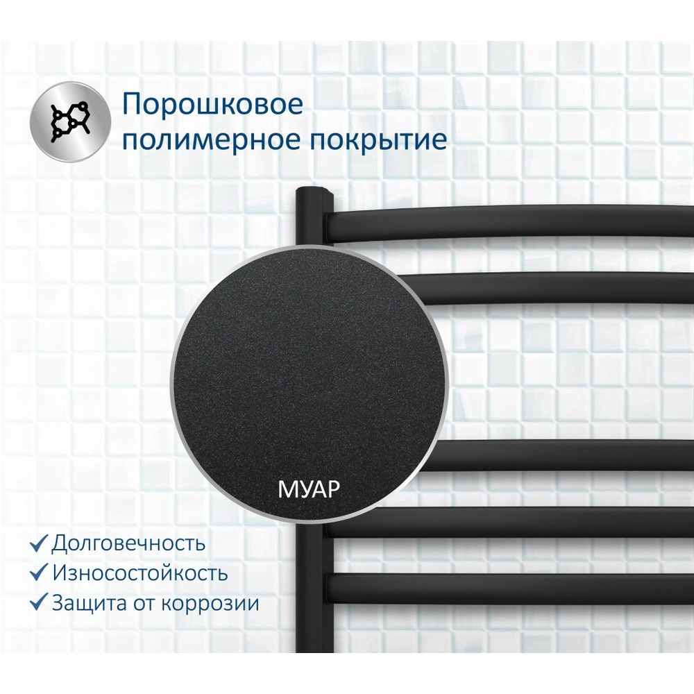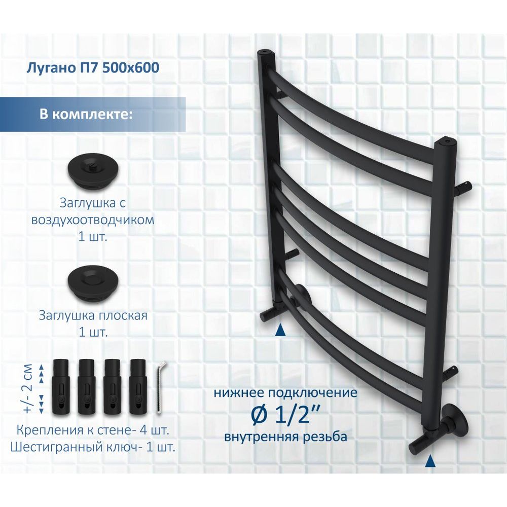 Представляем вашему вниманию водяной полотенцесушитель Акватек Лугано П7 в эффектном черном муаре. Коллекция «Лугано» от бренда «Акватек» создана для тех, кто ценит элегантный дизайн и функциональность в каждой детали своей ванной комнаты. Полотенцесушитель выполнен из высококачественной нержавеющей стали с уникальным овальным профилем ребер и D-образными вертикальными стойками, что обеспечивает не только быстрое нагревание, но и долговечность изделия.