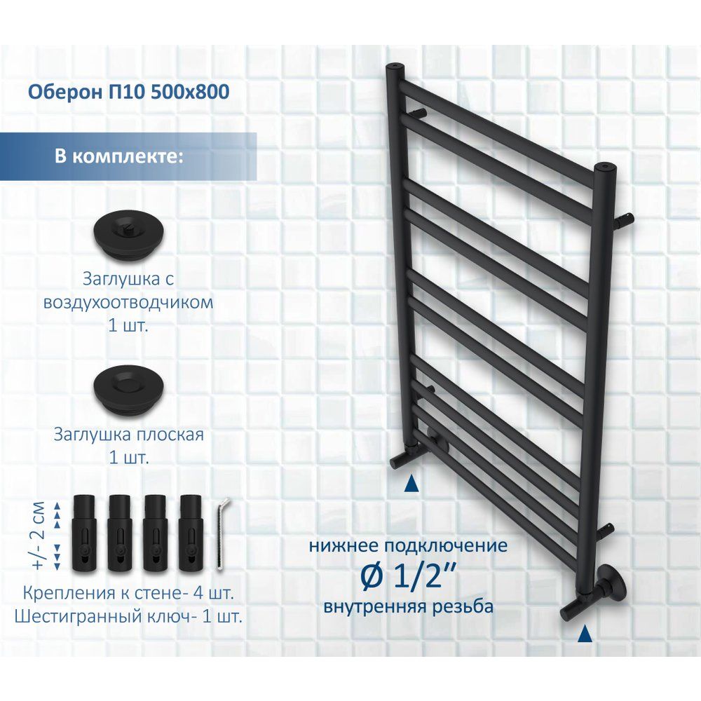 Водяной полотенцесушитель Акватек Оберон П10 50x80 в стильном черном муаре станет изысканным дополнением для вашей ванной комнаты. Дизайн изделия сочетается с элегантностью и функциональностью, обеспечивая быстрое и эффективное высушивание полотенец. Его прочная конструкция из нержавеющей стали, выполненная с использованием лазерной сварки, гарантирует надежность и долговечность, а продуманное горизонтальное и диагональное подключение позволяет максимально удобно интегрировать устройство в любой интерьер.