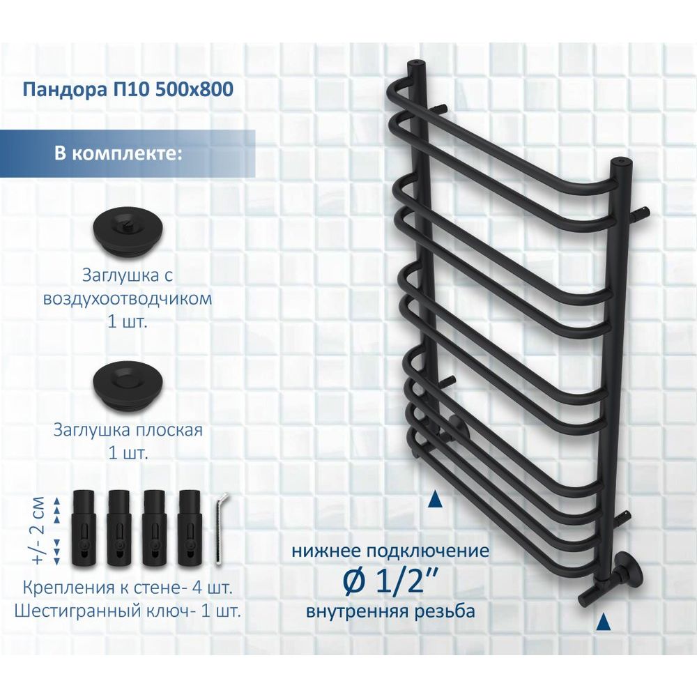Полотенцесушитель водяной Акватек Пандора П10 50x80 черный муар станет элегантным дополнением к вашему санузлу. С его помощью вы сможете не только быстро высушить полотенца, но и обеспечить комфортное тепло в ванной комнате. Высокое качество материалов и современный дизайн делают его надежным и стильным выбором для любой ванной.