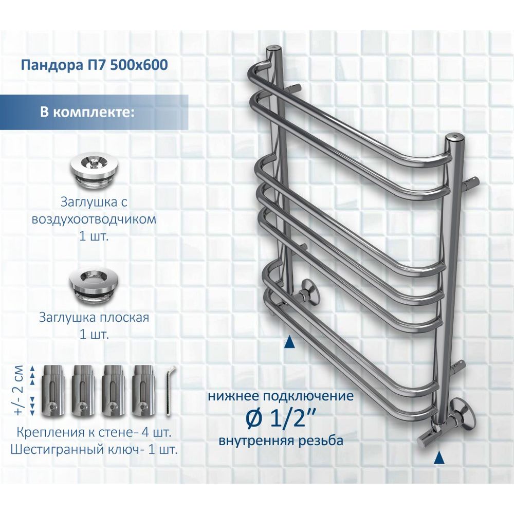 Полотенцесушитель водяной Акватек Пандора П7 50x60 в хромированном исполнении — это идеальное сочетание стиля и функциональности для вашего современного интерьера. С его помощью вы не только добавите комфорта в вашу ванную комнату, но и создадите уютную атмосферу с оптимальной температурой.