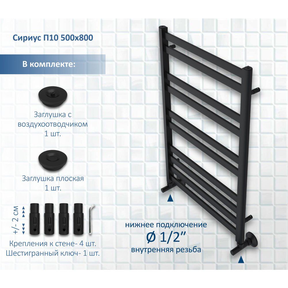 Когда дело доходит до оснащения вашей ванной комнаты, полотенцесушитель водяной Акватек Сириус П10 50x80 черный муар - это не просто элемент комфорта, но и стильное дизайнерское решение. С эксклюзивным черным муаровым покрытием, этот полотенцесушитель станет прекрасным дополнением к любой ванной комнате, выполняя не только функцию обогрева, но и декоративную роль. Простота установки, высокая эффективность и долговечность — вот чем примечателен этот выбор.