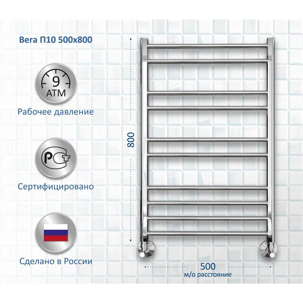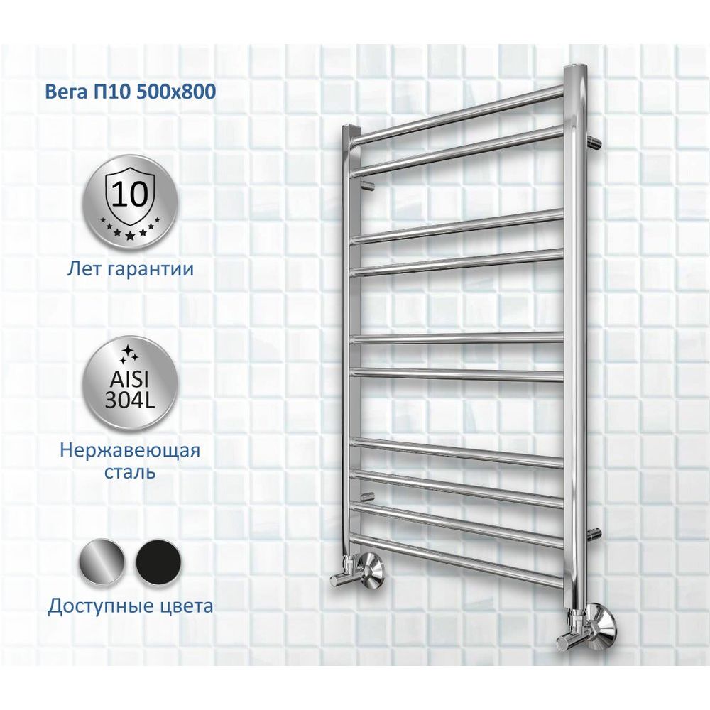 Полотенцесушитель водяной Акватек Вега П10 50x80 хром — это современное решение для поддержания тепла и комфортной атмосферы в вашей ванной комнате. Изготовленный из качественной нержавеющей стали, он обеспечивает надежную долговечность и стильный внешний вид. Уникальный профиль ребер круглой формы диаметром 18 мм и вертикальные стойки D-образной формы 30х30 мм делают этот полотенцесушитель не только эффективным, но и эстетически привлекательным элементом интерьера.