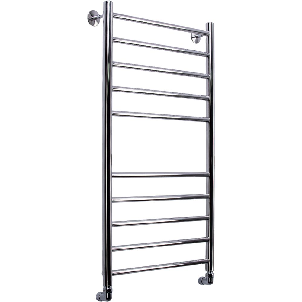 Полотенцесушитель Comfysan Luce W-10 имеет размеры 53,2x100 см и межосевое расстояние 50 см, что делает его оптимальным решением для стандартных ванных комнат. Уникальная система горизонтального и вертикального подключения позволяет легко интегрировать изделие в вашу существующую систему. Устройство выполнено из нержавеющей стали с электросварным швом, что обеспечивает долговечность и надежность использования.