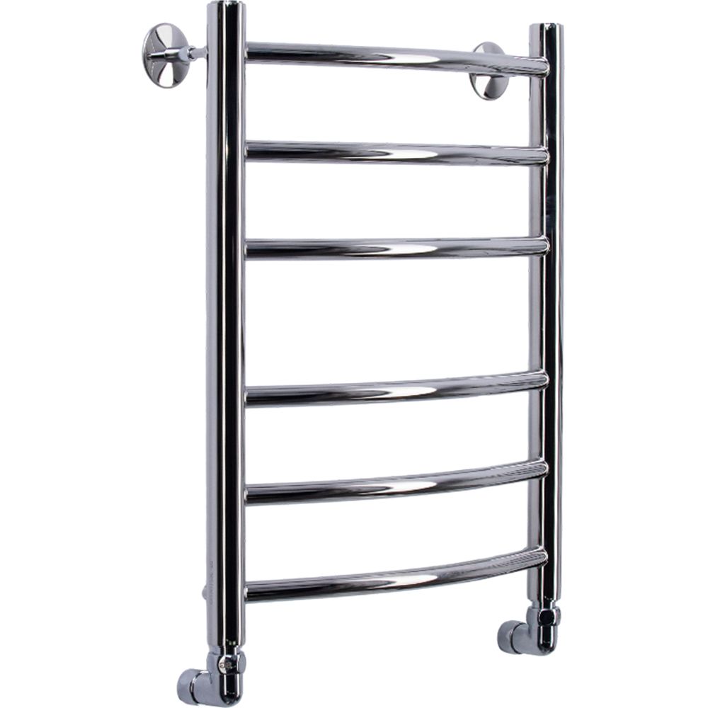 Полотенцесушитель имеет габариты 43,2х60 см с межосевым расстоянием 40 см. Благодаря горизонтальному и вертикальному подключению, а также подаче воды сверху и выпуску потока снизу, вы можете легко установить его в своей ванной комнате. Изделие изготовлено из нержавеющей стали, что гарантирует его долговечность. В комплект входят угловые американки, отражатели, кран Маевского и крепления, что значительно упрощает установку и эксплуатацию. Производство осуществляется в России, и на полотенцесушитель предоставляется гарантия 5 лет.