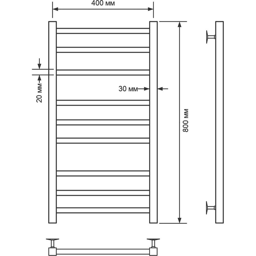 Полотенцесушитель имеет размеры 43x80 см и межосевое расстояние 40 см, что делает его компактным и легко вписывающимся в любой интерьер. Конструкция предусматривает возможности подключения: подача воды сверху или по диагонали, выпуск потока снизу. Это облегчает процесс установки и обеспечивает максимальную эффективность работы устройства. Оснащен угловыми американками, отражателями и краном Маевского для удаления воздуха из системы.