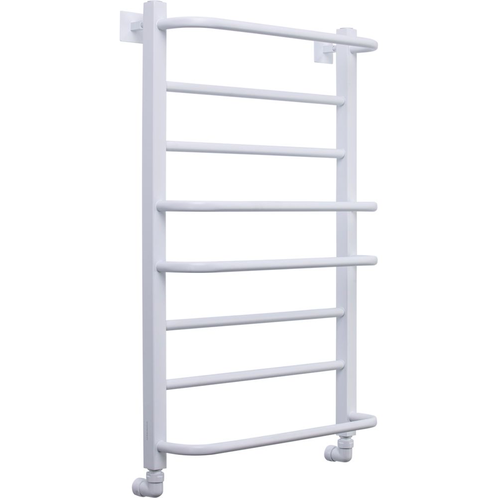 Полотенцесушитель Comfysan Puro-K W-8 имеет размеры 53x80 см и межосевое расстояние подключения 50 см, что делает его компактным и удобным для большинства ванных комнат. Он поддерживает различные варианты подключения: горизонтальное, вертикальное с подачей воды сверху и выпуском снизу, а также диагональное. В комплекте с устройством идут угловые американки, отражатели, кран Маевского для удаления воздуха из системы и крепления, что значительно упрощает процесс установки. изделие произведено в России и обладает 5-летней гарантией.