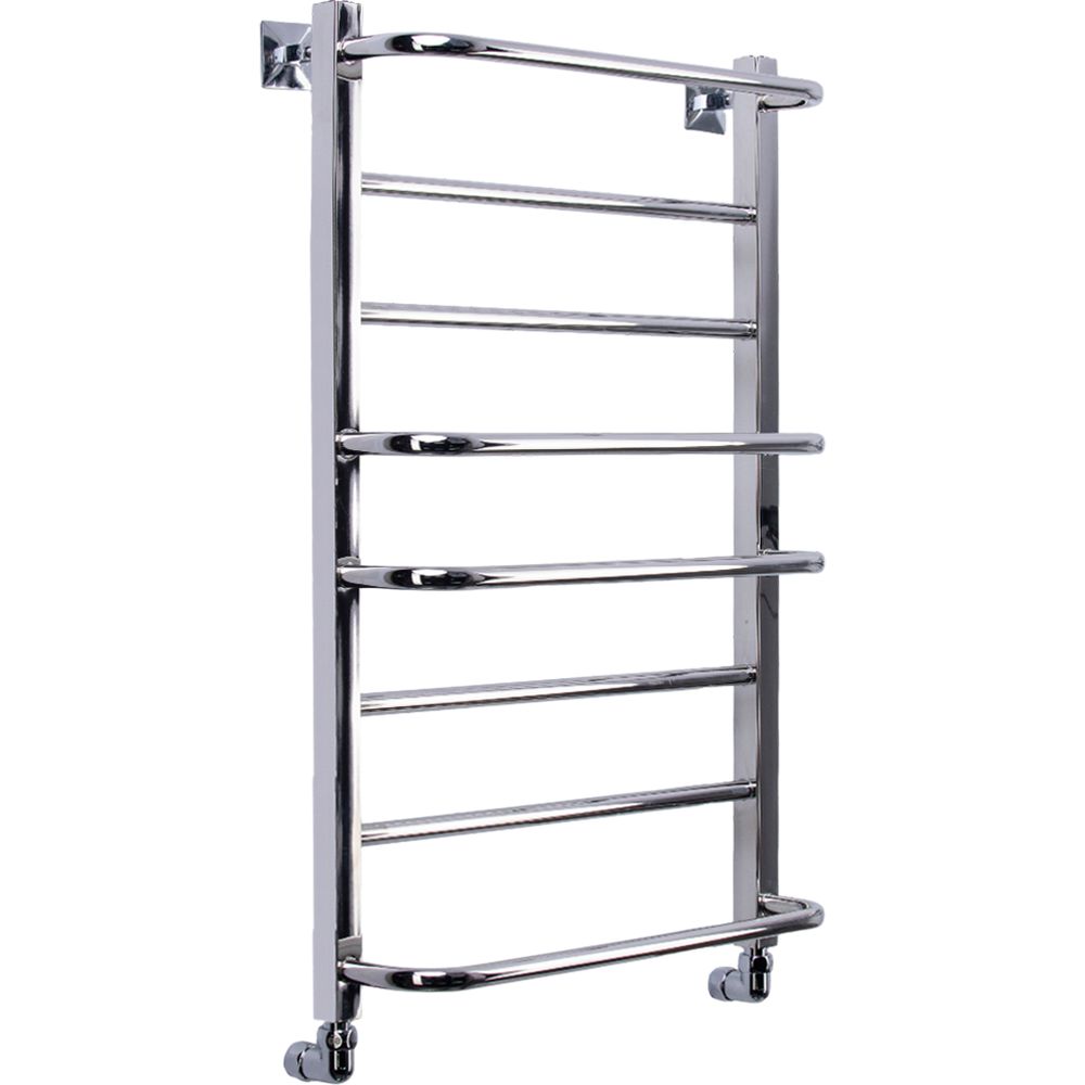 Полотенцесушитель имеет размеры 53x80 см и межосевое расстояние 50 см, что позволяет эффективно использовать пространство в вашей ванной комнате. Возможность как горизонтального, так и вертикального подключения, с подачей воды сверху и выпуском снизу, обеспечивает универсальность установки. Оснащен трубой с электросварным швом из нержавеющей стали, что повышает его устойчивость к коррозии. В комплект входят угловые американки, отражатели и кран Маевского для удаления воздуха из системы, а также крепления для надежной установки.