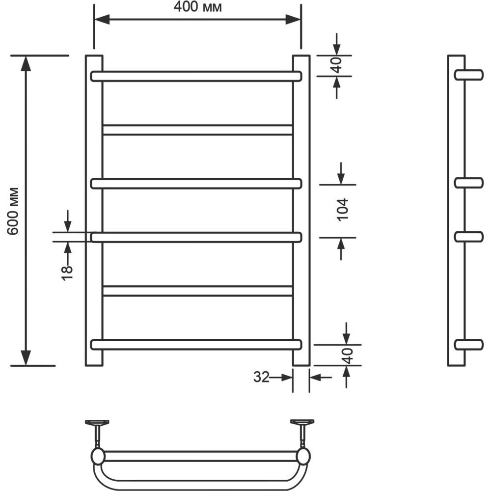 Размеры полотенцесушителя составляют 43,2 см в ширину и 60 см в высоту, что делает его компактным и удобным в размещении. Межосевое расстояние 40 см позволяет воспользоваться системой подключения: горизонтального или вертикального, с подачей воды сверху и выпуском потока снизу. Для производства изделия использована труба с электросварным швом, что гарантирует отсутствие утечек. Комплектация включает угловые американки, отражатели и кран Маевского, который облегчает удаление воздуха из системы. Продукт полностью подвесной, что облегчает монтаж и увеличивает пространство в ванной комнате, и поставляется с креплениями. Гарантия - 5 лет, что подчеркивает надежность и долговечность изделия.