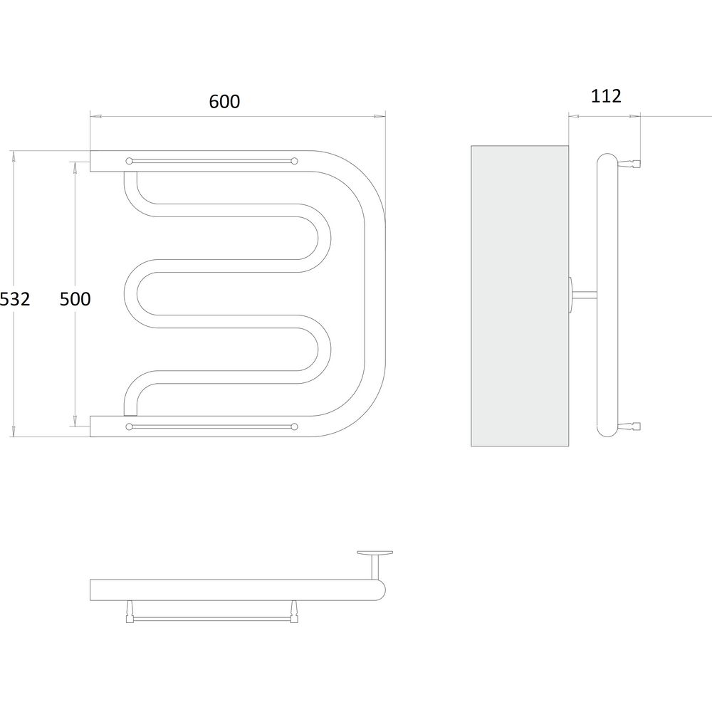 Полотенцесушитель Domoterm Фокстрот имеет размеры 60x53,2 см и межосевое расстояние 50 см, что делает его идеальным для подвесной установки. Мощность в 305 Вт позволяет эффективно отапливать помещение площадью до 3,1 м². Используется труба с электросварным швом, что повышает надежность конструкции. В комплекте имеется полотенцедержатель, увеличивающий его функциональность.