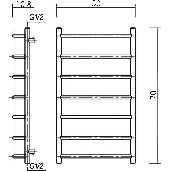 Полотенцесушитель Domoterm Лаура П7 имеет габаритные размеры 50x70 см с межосевым расстоянием 50 см, что делает его идеальным для большинства стандартных ванных комнат. Подключение осуществляется горизонтально и подходит как для систем горячего водоснабжения, так и отопления. Изготовленный из качественной латуни с использованием электросварного шва, он идет в подвесном исполнении и включает кран Маевского для удаления воздуха из системы. В комплект входят крепления, что облегчает установку. Продукция имеет гарантию 3 года и производится в России.