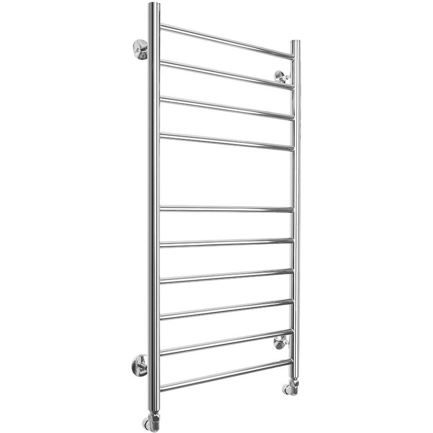 Размеры полотенцесушителя составляют 53,2x100 см, а межосевое расстояние — 50 см, что позволяет ему идеально вписаться в ваше пространство. Для подключения используется труба с электросварным швом, что обеспечивает надежность и долговечность прибора. Комплектация включает отражатели, кран Маевского для удаления воздуха из системы и крепления для удобства установки.