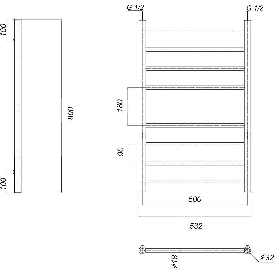 Полотенцесушитель Domoterm Медея имеет размеры 53,2x80 см, что делает его компактным и функциональным даже в небольших помещениях. Межосевое расстояние составляет 50 см, обеспечивая удобство в установке. Он рассчитан на обогрев площади до 2.01 м2, а в комплекте имеются необходимые крепления и отражатели. Кран Маевского включен в комплект для легкого удаления воздуха из системы, что обеспечивает бесперебойную работу и оптимальную теплоотдачу. Гарантия — 5 лет, производство — Россия.