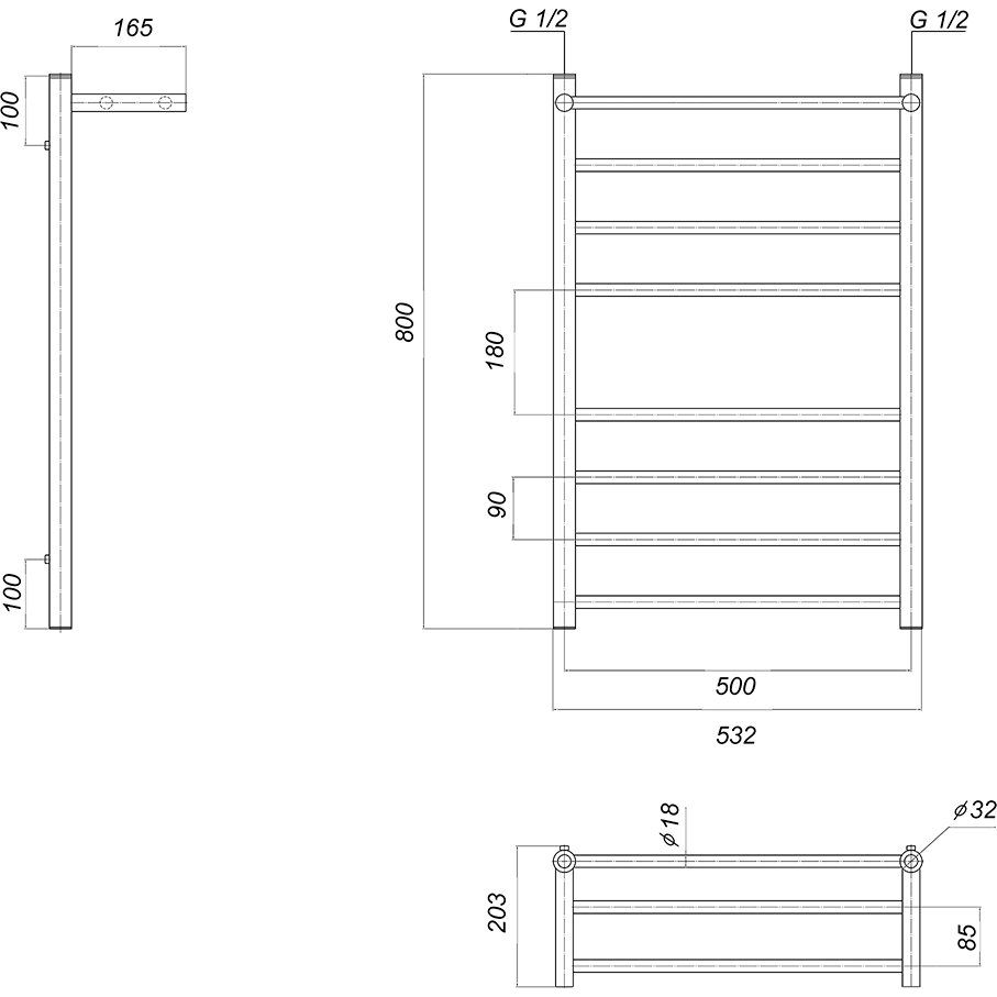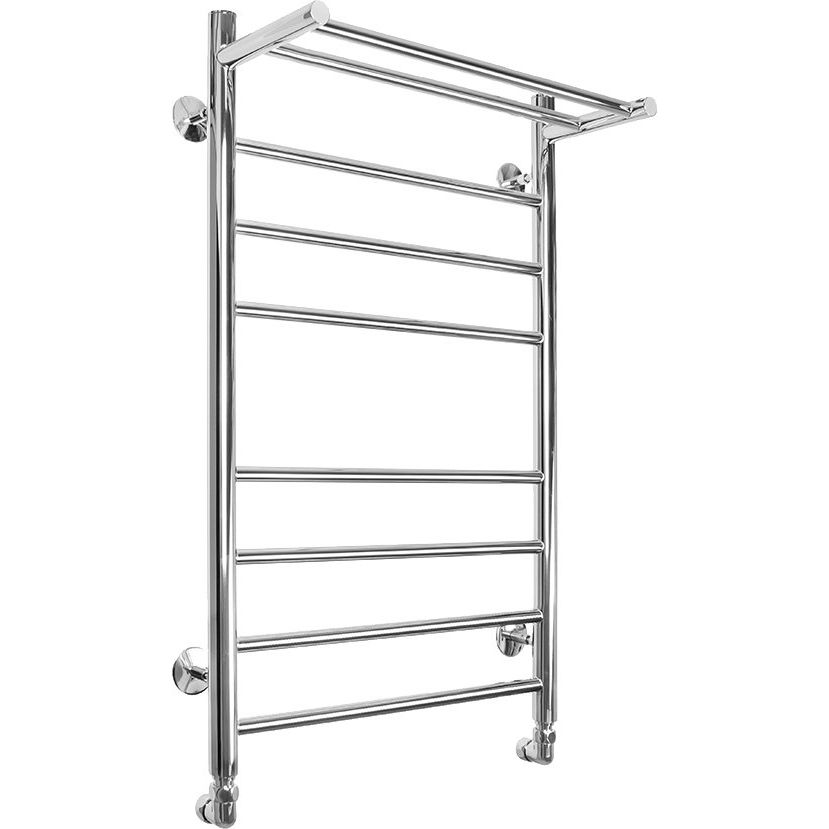 Полотенцесушитель имеет размеры 53,2x80 см и оснащен удобной полкой для дополнительных вещей. Межосевое расстояние составляет 50 см, что упрощает монтаж в типовых условиях. В конструкции используется труба с электросварным швом, что гарантирует прочность и долговечность. Для удобства эксплуатации предусмотрены отражатели и кран Маевского для удаления воздуха из системы. Прочный и надежный подвесной монтаж обеспечивает безопасность использования. Гарантия на изделие составляет 5 лет.