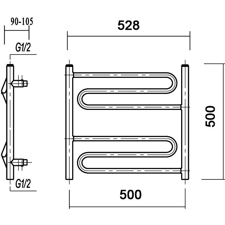 Габариты изделия составляют 52,8x50 см, что делает его компактным и подходящим для большинства ванных комнат. При межосевом расстоянии в 50 см и площади обогрева 4,33 м², полотенцесушитель предлагает оптимальное распределение тепла. Устройство подключается горизонтально и изготовлено из нержавеющей стали с электросварным швом для дополнительной прочности. Комплектуется отражателями и креплениями для легкой установки. Предусмотрена 3-летняя гарантия на изделие, что подчеркивает уверенность производителя в качестве своей продукции.