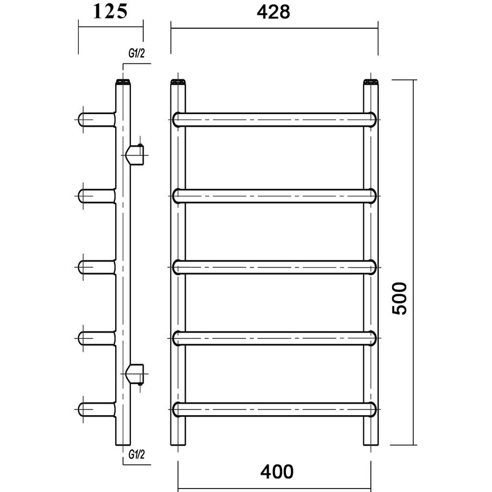 Полотенцесушитель Domoterm Стефано имеет размеры 42,8x50 см, что обеспечивает оптимальное использование пространства. Межосевое расстояние составляет 40 см, что упрощает монтаж. Он предназначен для обогрева площади до 2 кв. м, а горизонтальное подключение делает установку особенно простой. Используется электросварная труба из нержавеющей стали, поддерживается трехлетняя гарантия. В комплекте вы найдете отражатели, кран Маевского, полезный для удаления воздуха из системы, а также необходимые крепления.