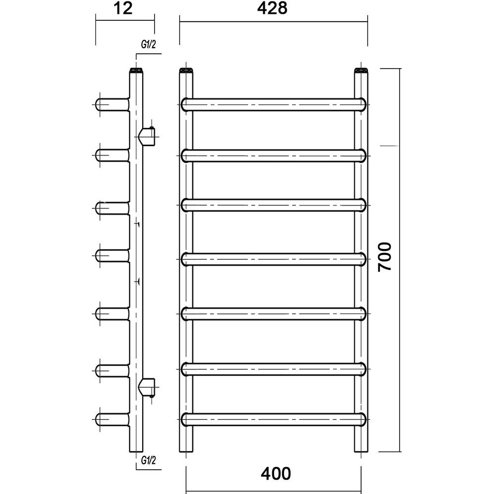 Полотенцесушитель имеет габариты 42,8x70 см и межосевое расстояние 40 см, что подходит для оптимального размещения в ванной комнате. Он изготовлен из прочной трубы с электросварным швом, дополнен декоративными заглушками и удобными креплениями. Подвесной монтаж позволит сэкономить пространство, а гарантия от производителя составляет 3 года.