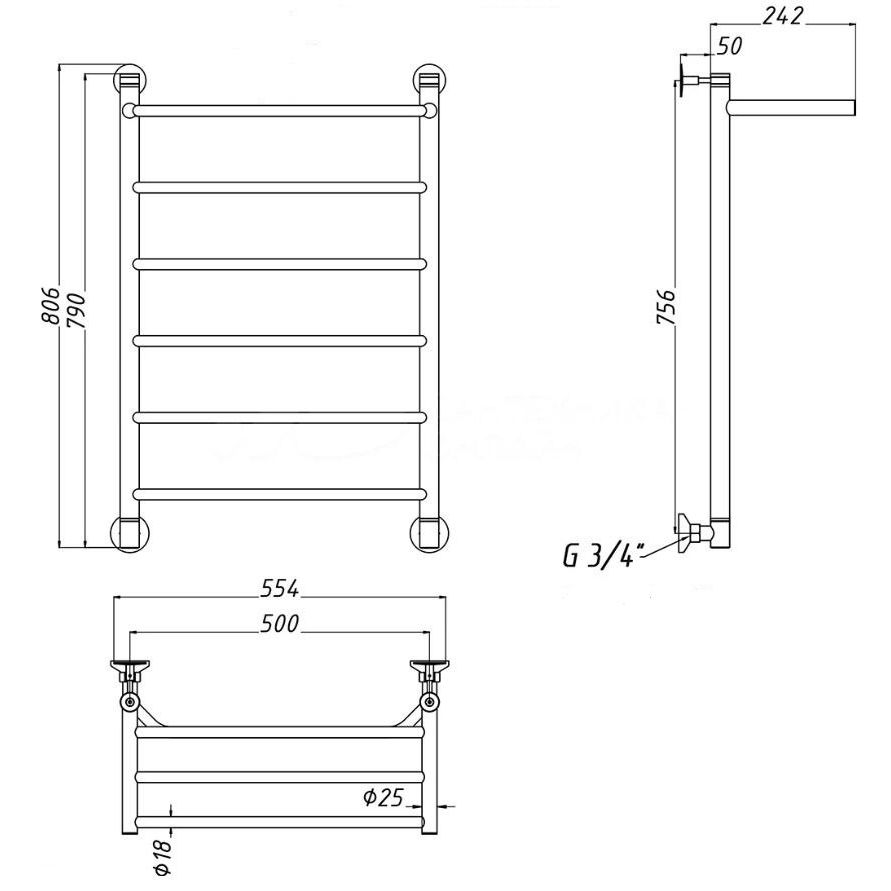 Полотенцесушитель имеет габариты 55,4x80,6 см и оснащён удобной полкой для размещения полотенец. Производится в России и включает монтажный набор EWRIKA с комплектом углов для п/с 3/4-1/2. Его площадь обогрева составляет 3.73 м², а возможные варианты подключения — горизонтальное, вертикальное, диагональное — обеспечивают гибкость установки. Подача воды сверху с выпуском потока снизу, что способствует эффективному прогреву.