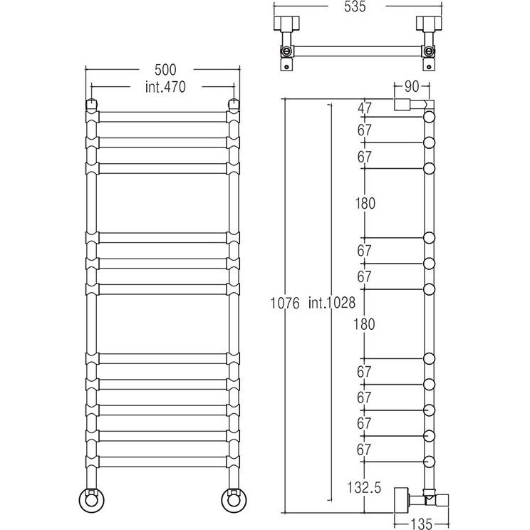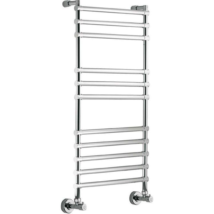 Полотенцесушитель имеет размеры 53,5 см в ширину и 107,6 см в высоту с межосевым расстоянием 47 см, что позволяет оптимально использовать пространство. Устройство поддерживает подключение с помощью внешней резьбы 1/2, может выдерживать температуру воды до 110 °С и рабочее давление до 15 атмосфер. Подвесная конструкция делает установку простой и надежной. Продукт оснащен всеми необходимыми креплениями и сопровождается годовой гарантией.