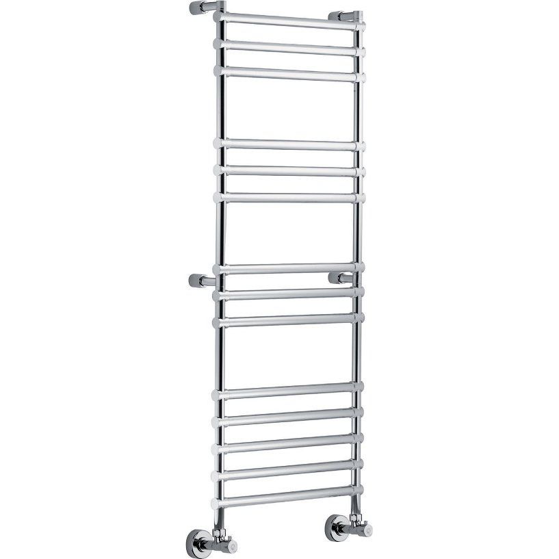 Полотенцесушитель Margaroli Sole 464-14/L выполнен из латунных труб диаметром 25 мм и подключается через внешнюю резьбу 1/2. Изделие выдерживает максимальную температуру воды в 95 °С и рабочее давление до 8 атмосфер. Его размеры составляют 53,5 см в ширину и 139 см в высоту, с межосевым расстоянием 47 см, обеспечивая удобное горизонтальное подключение. Полотенцесушитель подвесной и поставляется с креплениями. На продукт распространяется годовая гарантия.
