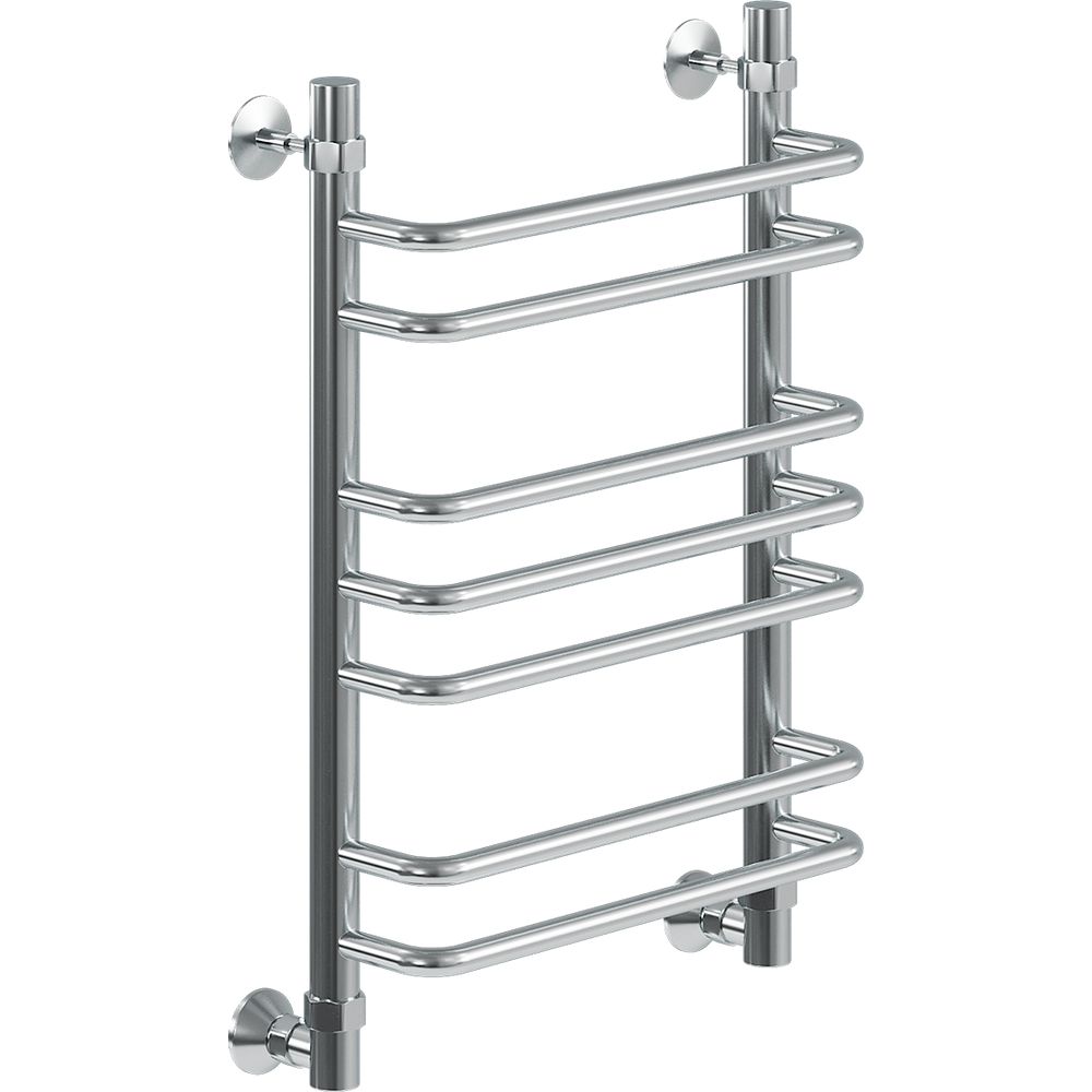 С габаритами 56x63 см и межосевым расстоянием 50 см, полотенцесушитель идеально впишется в интерьер любой ванной комнаты. Возможность горизонтального, вертикального или диагонального подключения позволяет выбрать наиболее удобный вариант установки с подачей воды сверху и выпуском потока снизу. Продукт оснащен всеми необходимыми креплениями и отражателями, а встроенный кран Маевского поможет быстро избавиться от воздуха в системе.