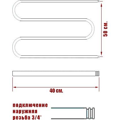 Полотенцесушитель Ника Simple М-3/4 50/40 изготовлен из прочной нержавеющей стали и имеет габариты 40x52 см с межосевым расстоянием 50 см. Он обеспечивает обогрев площади до 3.3 м². Диаметр основной трубы составляет 25 мм, а наружная резьба имеет размер 3/4 дюйма. Это подвесное устройство с вертикальным подключением — вода подается сверху, а выпуск потока осуществляется снизу. Все соединения выполнены методом электросварки, что повышает надежность изделия.