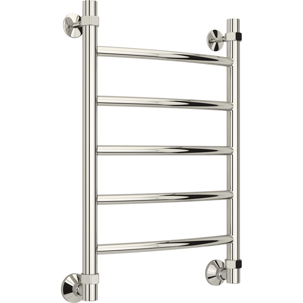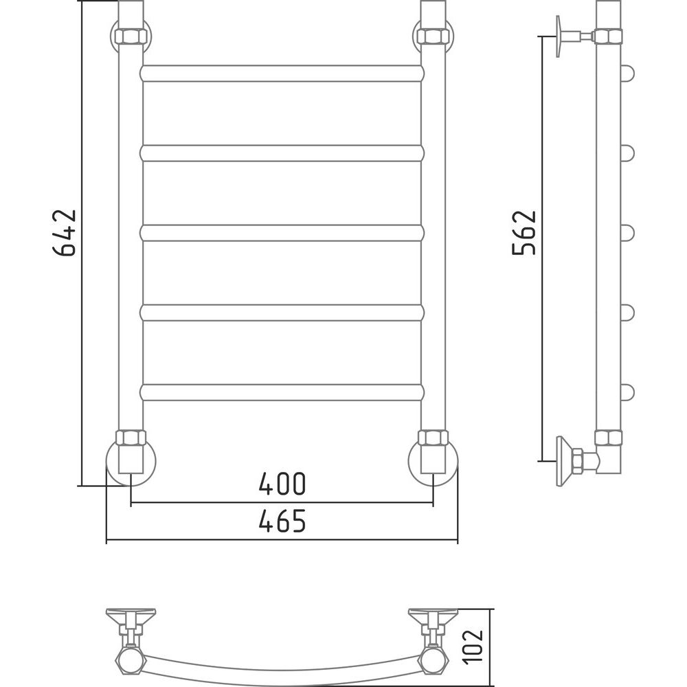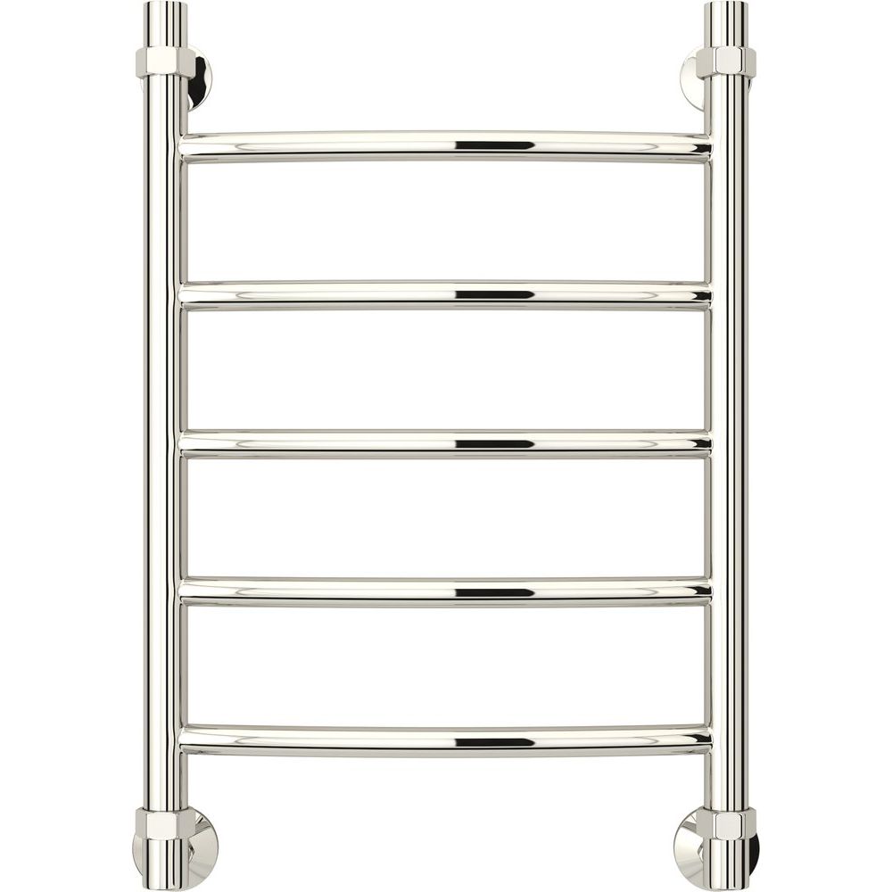 Полотенцесушитель имеет габариты 46,5x64,2 см, что делает его компактным и эргономичным для большинства помещений. Межосевое расстояние составляет 60 / 40 см, обеспечивая гибкость при монтаже. Он поддерживает горизонтальное и вертикальное подключение, а также подачу воды сверху и выпуск потока снизу, возможна диагональная установка. В конструкции используется труба с электросварным швом, повышающим устойчивость и долговечность устройства. Полотенцесушитель подвесной, с дополнительными элементами для установки, такими как отражатели, муфта и накидная гайка.