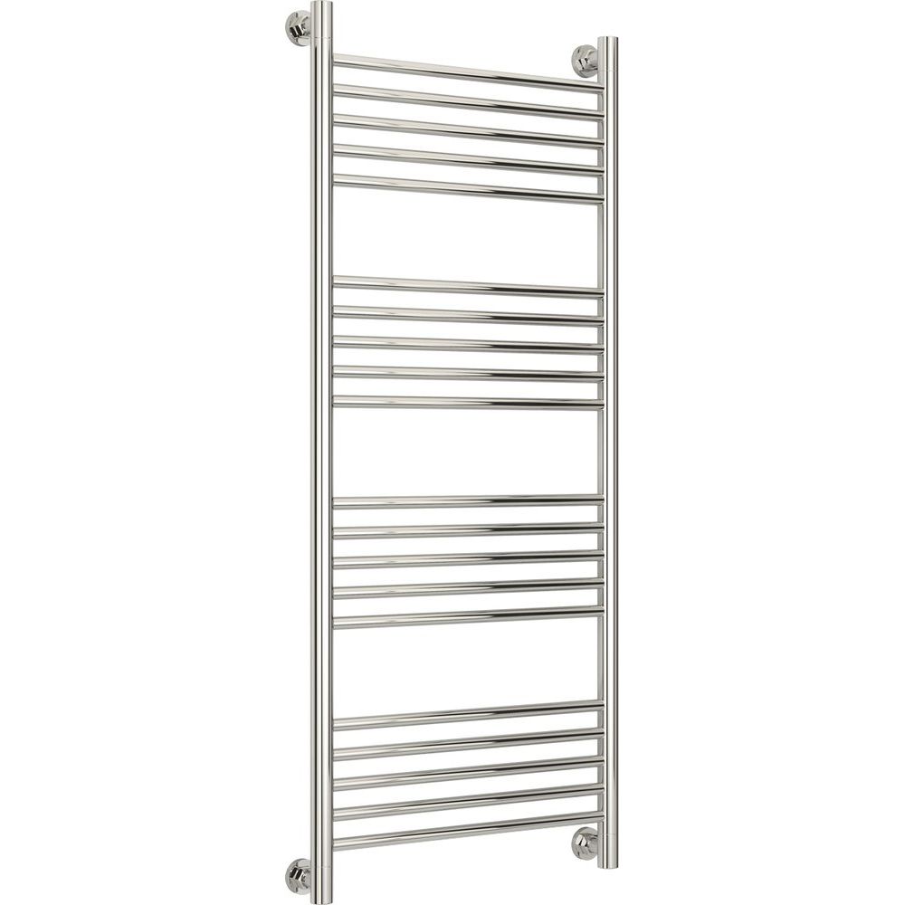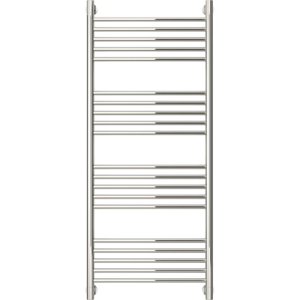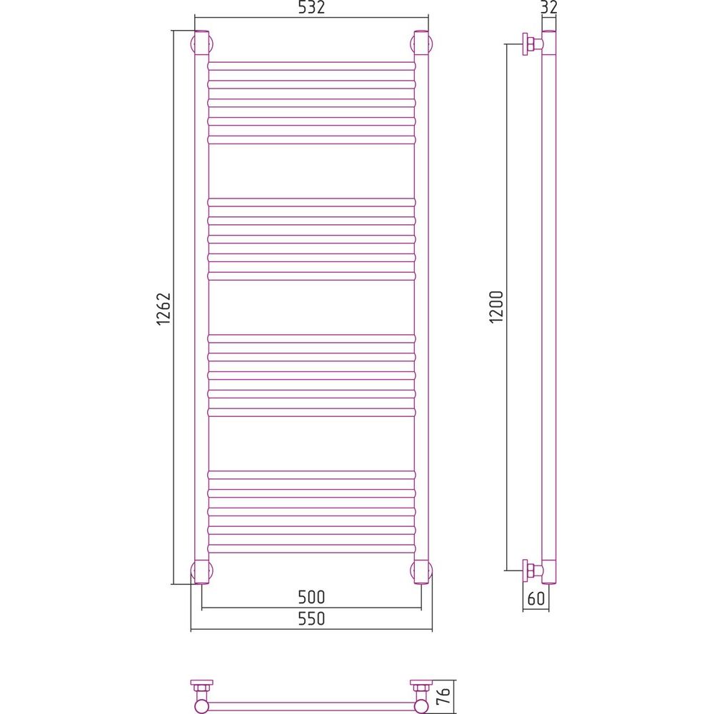 Полотенцесушитель имеет габариты 55x126,2 см и межосевое расстояние для подключения составляет 120/50 см. Использована труба с электросварным швом, что повышает устойчивость к давлению и продлевает срок службы устройства. Оборудован такими аксессуарами, как отражатели, накидная гайка и необходимые крепления для удобного монтажа. Осуществляется подвесной монтаж, что экономит место в помещении. Гарантия от производителя — 10 лет.