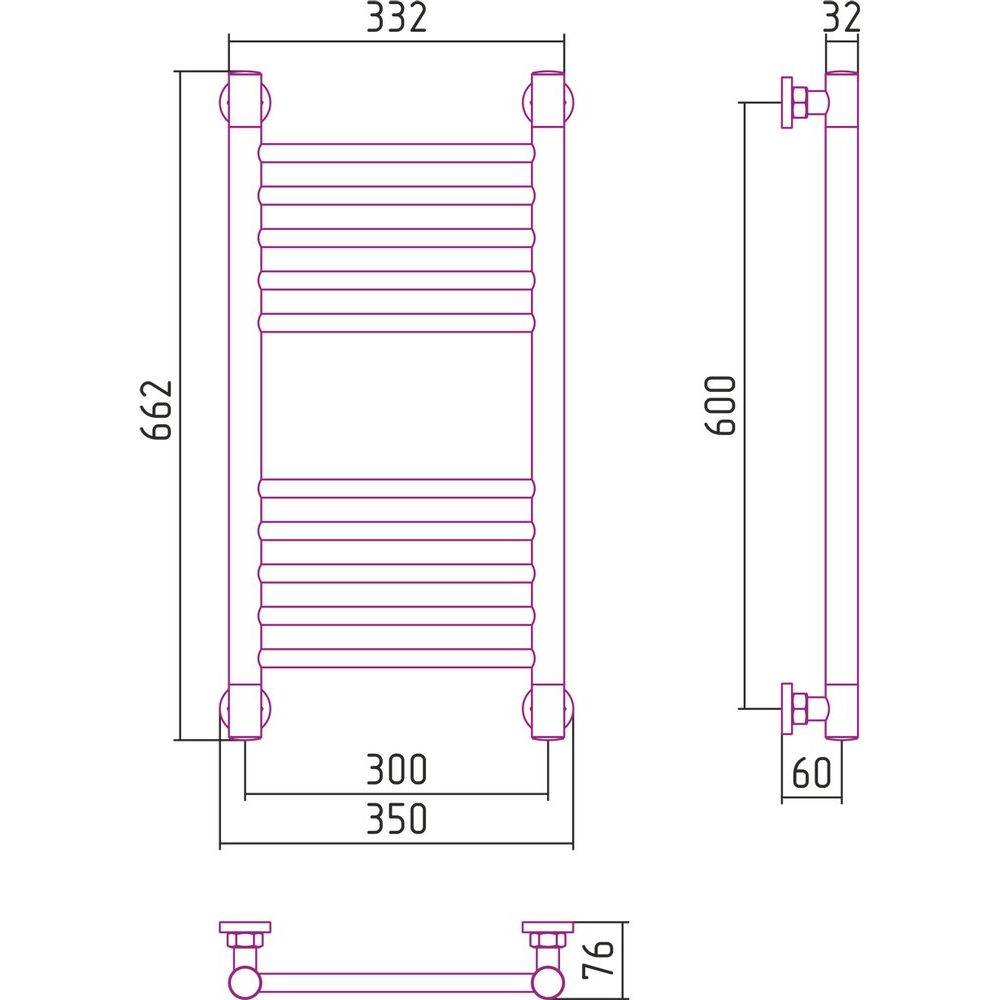 Габариты полотенцесушителя составляют 35x66,2 см, что делает его компактным решением для небольших ванных комнат. Межосевое расстояние в 60/30 см позволяет гибко выбирать способы подключения: горизонтальное, вертикальное или диагональное, с подачей воды сверху и выпуском снизу. Для надежной работы прибор оснащен отражателями и краном Маевского, который позволяет удалять воздух из системы. В комплект также входят накидная гайка и крепления для простой установки. Расположенная в России, компания Сунержа предлагает 10-летнюю гарантию на данный продукт.