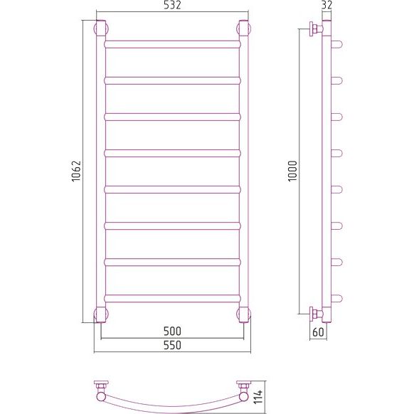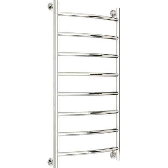 С размерами 55x106,2 см и межосевым расстоянием 100/50 см, полотенцесушитель легко адаптируется под разные типы подключения: горизонтальное и вертикальное с подачей воды сверху и выпуском потока снизу, что позволяет установку в любом удобном для вас положении. Теплоотдача достигает 433 Вт, что обеспечивает надежный обогрев ванной комнаты. Комплектуется отражателями и крепежными элементами для безопасного и надежного монтажа.