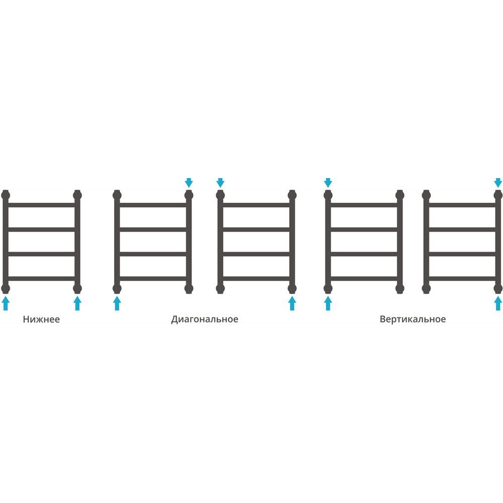 Полотенцесушитель «Сунержа Галант+» имеет размеры 45x56,2 см с межосевым расстоянием подключения 50/40 см. Он подходит для установки в системе горячего водоснабжения и отопления, обеспечивая площадь обогрева до 1,9 м2. Эффективная теплоотдача составляет 183 Вт, что делает его основным источником тепла в небольших ванных комнатах. Выполнен из нержавеющей стали и оснащен отражателями и креплениями для удобного подвеса. Установка возможна с горизонтальным, вертикальным или диагональным подключением, что добавляет гибкости при монтаже.