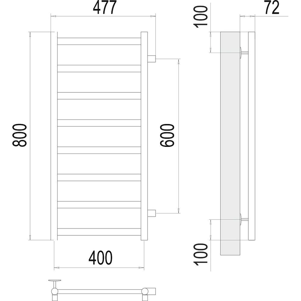 Полотенцесушитель имеет размеры 47,7х80 см и межосевое расстояние 60 см, что позволяет эффективно обогревать площадь до 2.5 м². Теплоотдача составляет 234 Вт, что гарантирует быстрое и равномерное нагревание. Изделие оснащено краном Маевского для удаления воздуха из системы. Установка предусматривает вертикальное подключение с подачей воды сверху и выпуском потока снизу. В комплекте также идут крепления.