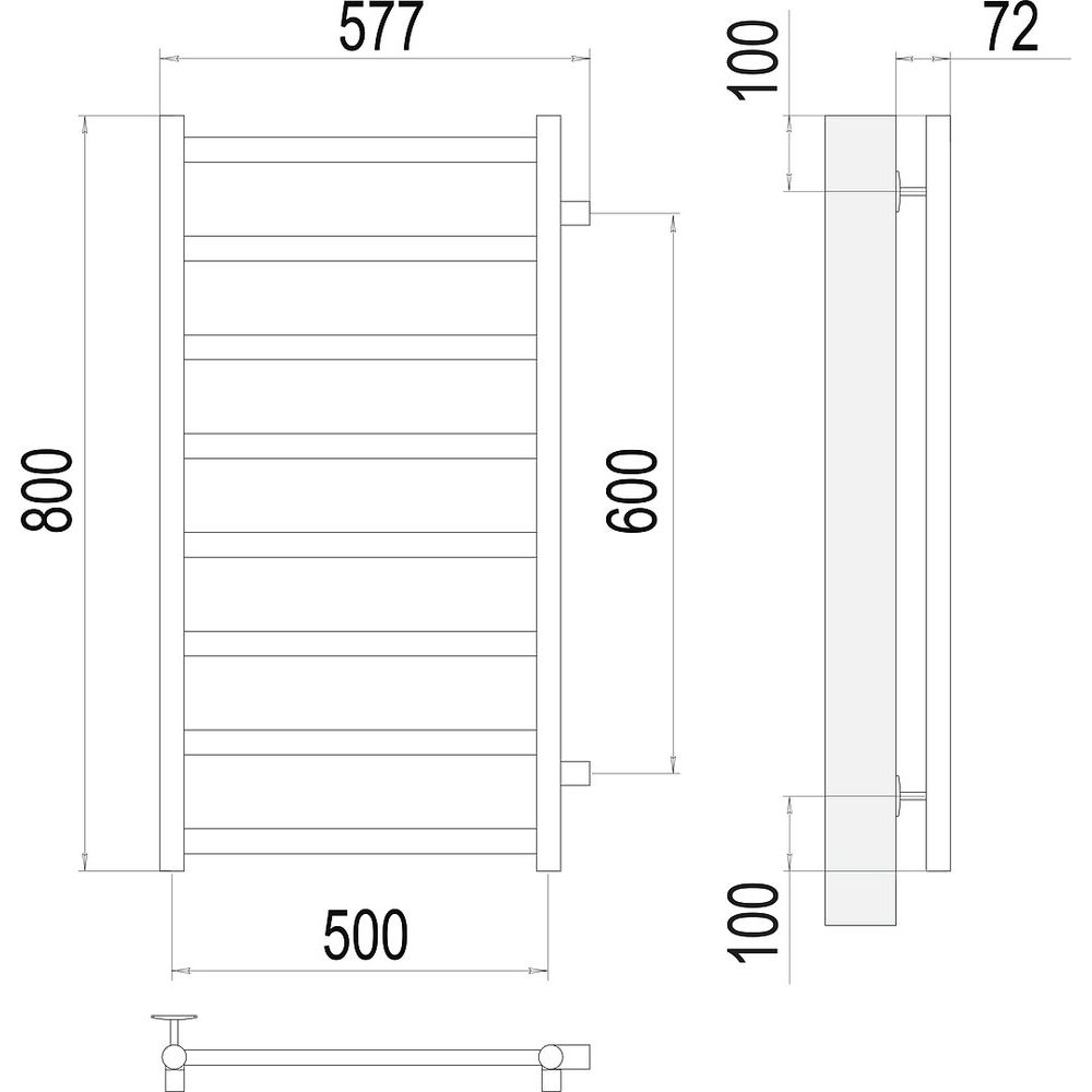 Полотенцесушитель имеет габариты 57,7x80 см и межосевое расстояние 60 см, что обеспечивает обогрев площади до 2,5 м². Удобное боковое подключение и подача воды сверху позволяют легко интегрировать изделие в любую водяную систему. Также изделие оснащено краном Маевского для удаления воздуха из системы и креплениями для надежной установки. Сделано в России, что гарантирует соответствие высоким стандартам качества местного производства.