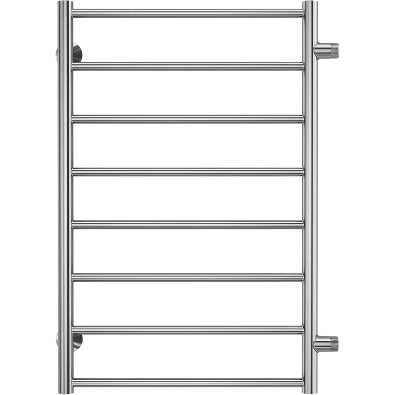 Полотенцесушитель водяной Terminus Аврора П8 500x800 сочетает в себе стильный дизайн и надежность, что делает его идеальным выбором для вашей ванной комнаты. Он изготовлен из пищевой нержавеющей стали, которая прекрасно переносит высокую влажность и перепады температуры, обеспечивая долговечность даже в самых жестких условиях. Плазменная полировка не только придает изделию изящный блеск, но и увеличивает его износостойкость. Каждый элемент полотенцесушителя идеально подогнан, что исключает наличие заусенцев и неровностей, гарантируя безопасность и герметичность соединений.