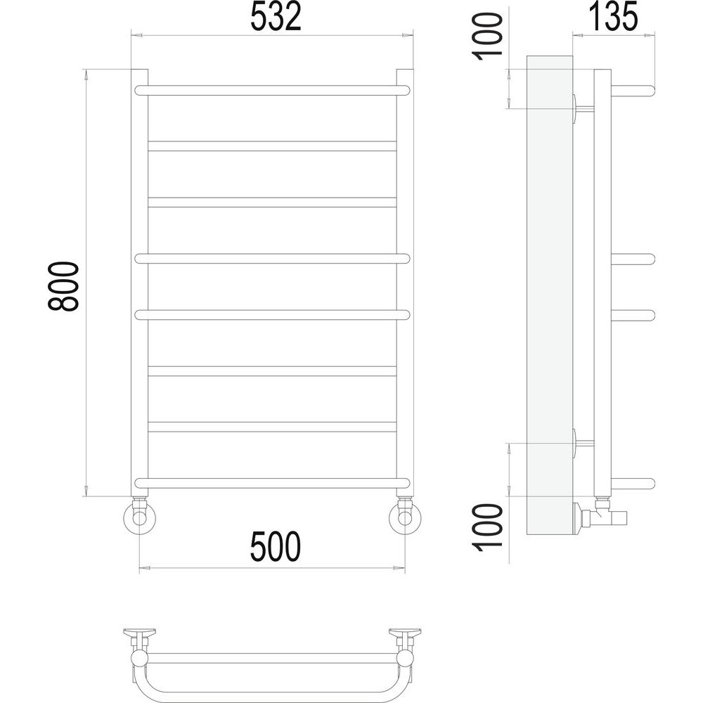 Полотенцесушитель имеет габариты 53,2x80 см и межосевое расстояние 50 см, обеспечивая равномерный обогрев площади в 3 м². С теплоотдачей 279 Вт он эффективно поддерживает комфортную температуру в помещении. Изделие предназначено для горизонтального подключения и оснащено краном Маевского, способствующим удалению воздуха из системы. Подвесной тип конструкции позволяет удобно разместить полотенцесушитель в любом интерьере, дополнительно комплектующие включают держатели для надежного крепления. Изготовлено в России и поддерживается гарантией на 10 лет.