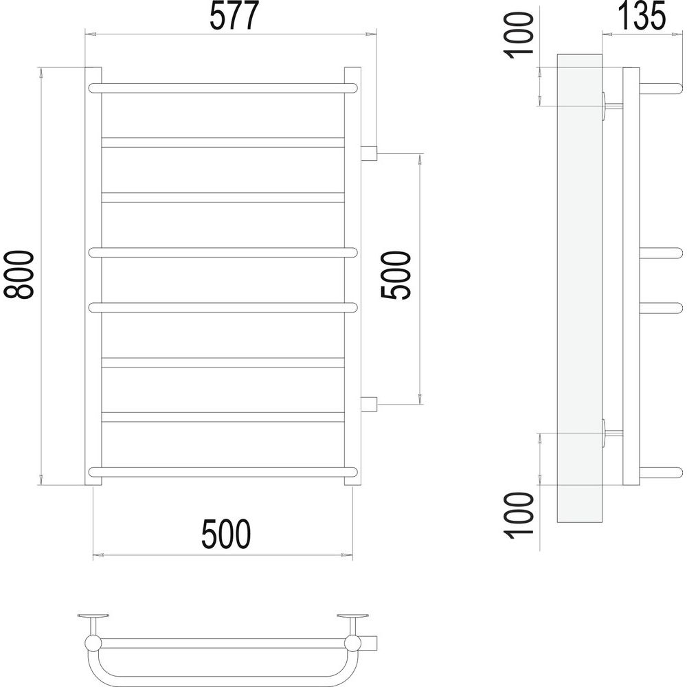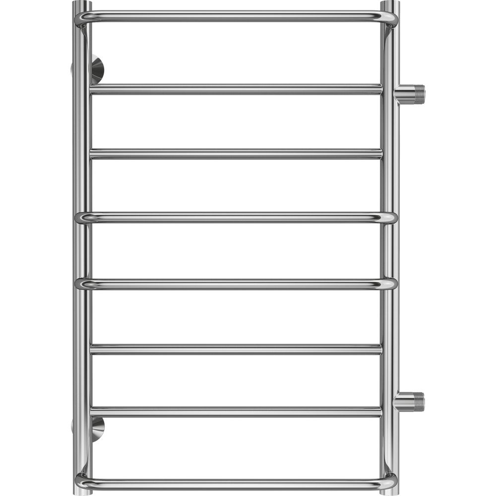 Полотенцесушитель Terminus Евромикс П8 имеет размеры 57,7x80 см и межосевое расстояние 50 см. Оснащен краном Маевского для удаления воздуха из системы и комплектом креплений для подвески. Подключение выполняется вертикально с подачей воды сверху и выпуском потока снизу, что обеспечит равномерное распределение тепла.