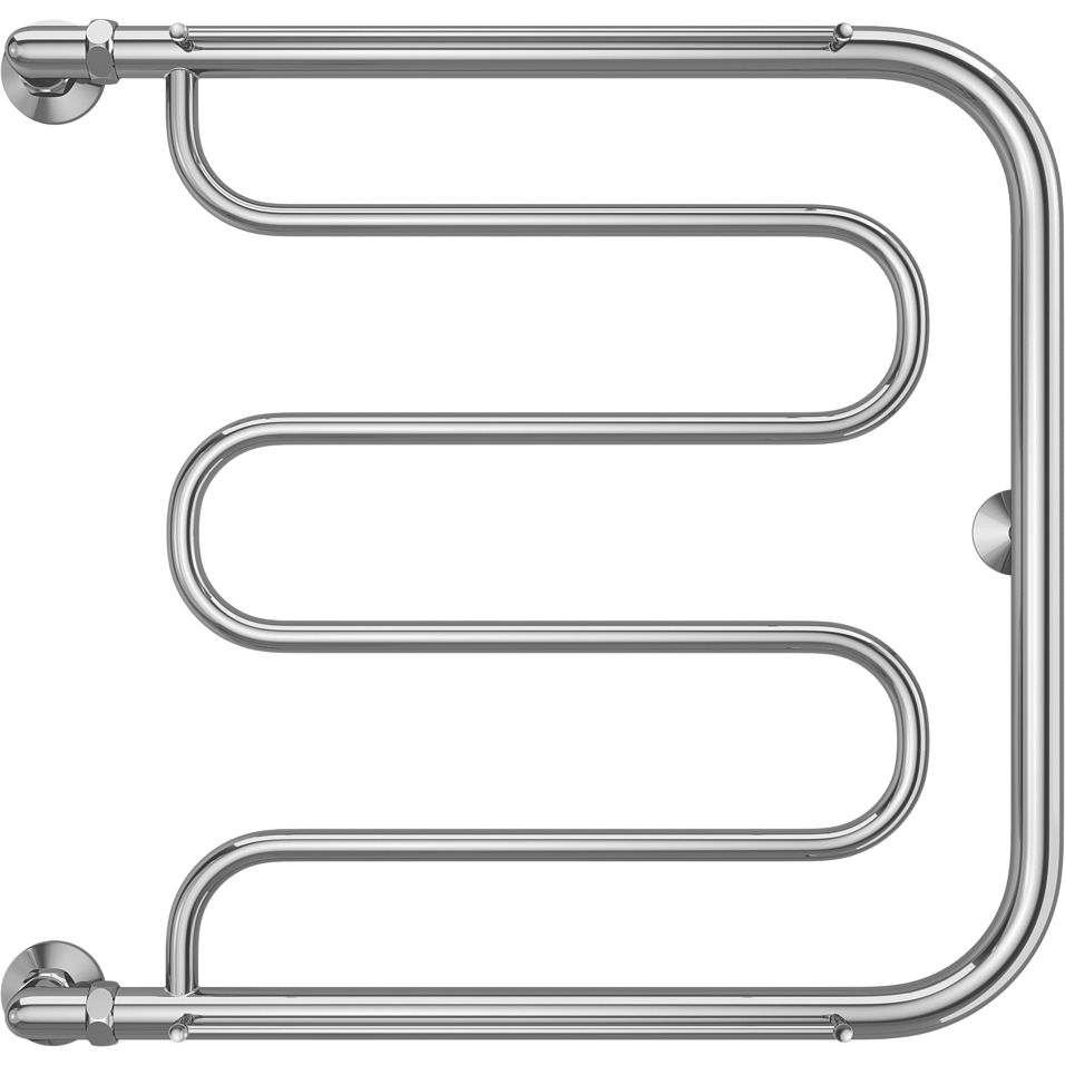 Полотенцесушитель водяной Terminus Фокстрот 600x600 — это надежное и стильное решение для вашей ванной комнаты. Его изысканный дизайн в виде изогнутой змейки не только эстетичен, но и безопасен, поскольку не содержит острых элементов. Этот полотенцесушитель изготовлен из высококачественной полированной нержавеющей стали, что гарантирует долговечность и устойчивость к коррозии. Он обеспечивает отличную теплоотдачу, позволяя эффективно обогреть площадь до 2,5 м². Для удобного хранения полотенец предусмотрено два держателя, что делает его ещё более функциональным.