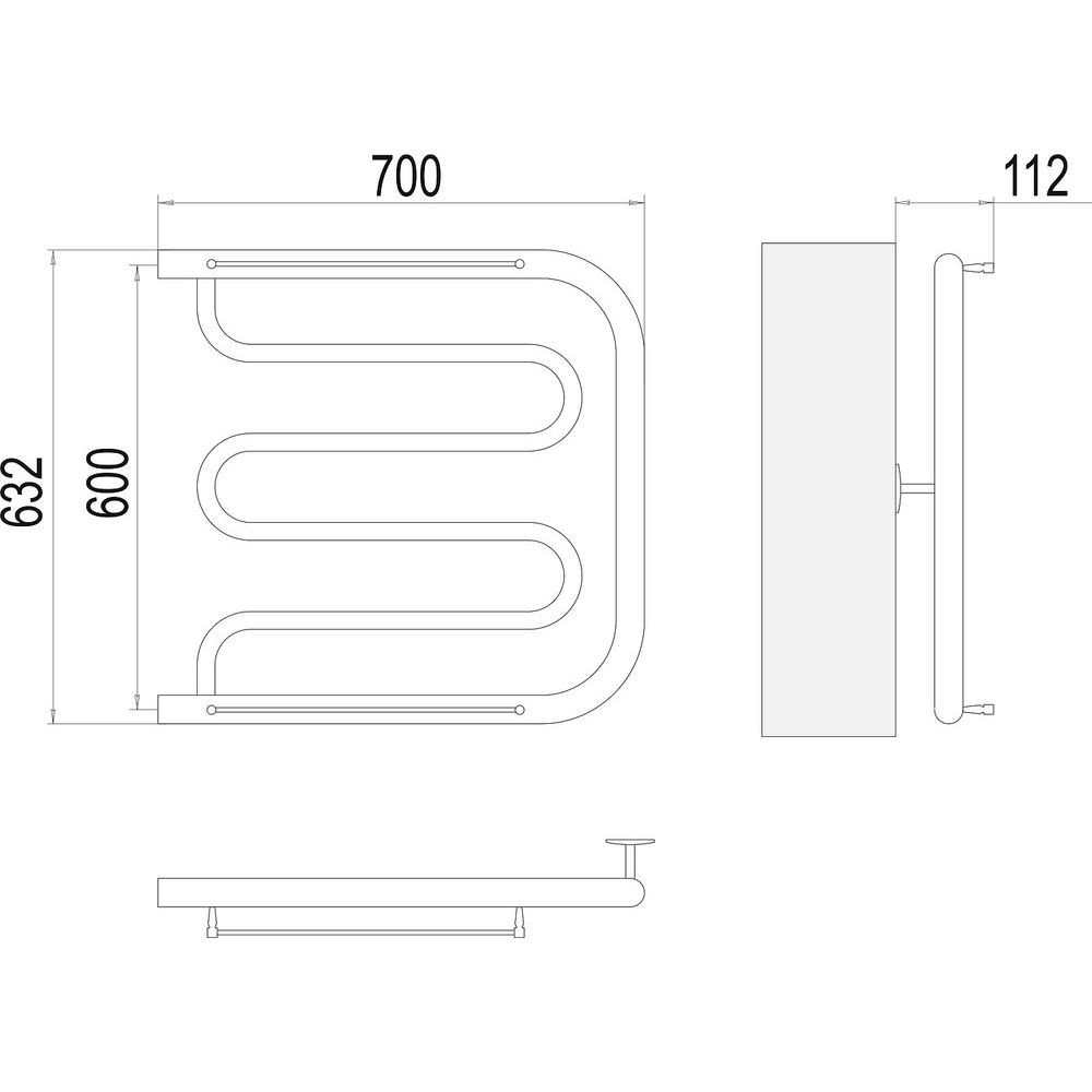 Полотенцесушитель имеет размеры 70x63,2 см и предназначен для вертикального подключения с межосевым расстоянием 60 см. Он эффективно обогревает площадь до 2.8 м². Выполнен в подвесном варианте, оснащен двумя держателями для полотенец и комплектуется креплениями. Материал изготовления — нержавеющая сталь, что обеспечивает устойчивость к коррозии и великолепный вид на протяжении долгих лет.