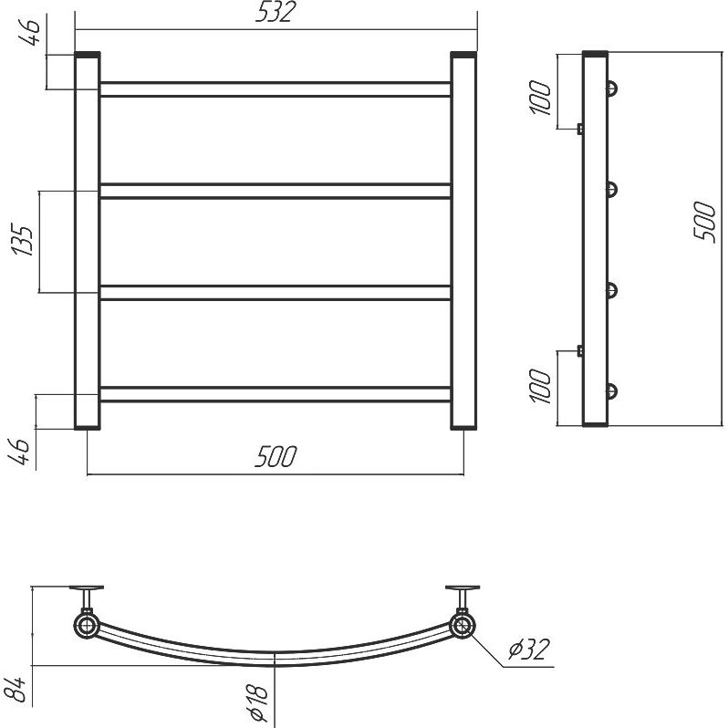Полотенцесушитель водяной Terminus Классик П4 имеет размеры 53,2x50 см и межосевое расстояние в 50 см, что делает его идеальным для небольших ванных комнат. Он выполнен из нержавеющей стали и оснащен отражателями, краном Маевского для удаления воздуха из системы и креплениями для подвеса. Используемая труба выполнена с электросварным швом, что добавляет прочности всей конструкции.