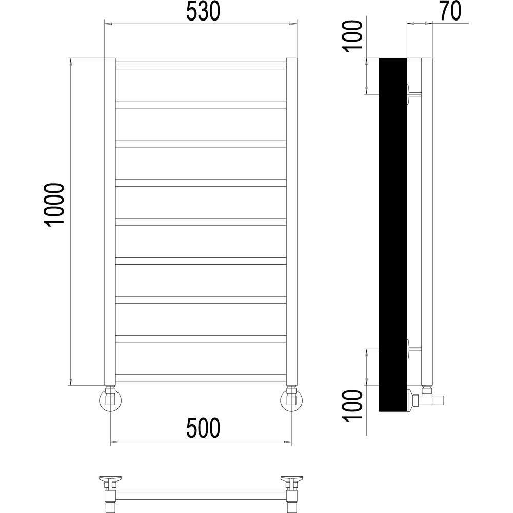 Полотенцесушитель имеет размеры 53 см в ширину и 100 см в высоту, что делает его подходящим для ванных комнат среднего и большого размера. Межосевое расстояние составляет 50 см, что удобно при монтаже. Площадь обогрева достигает 4 м2, обеспечивая комфорт и уют. Горизонтальное подключение и использование трубы с контактной сваркой гарантирует надёжность системы отопления. Максимальная теплоотдача составляет 408 Вт, а подвесная конструкция позволяет экономить место.