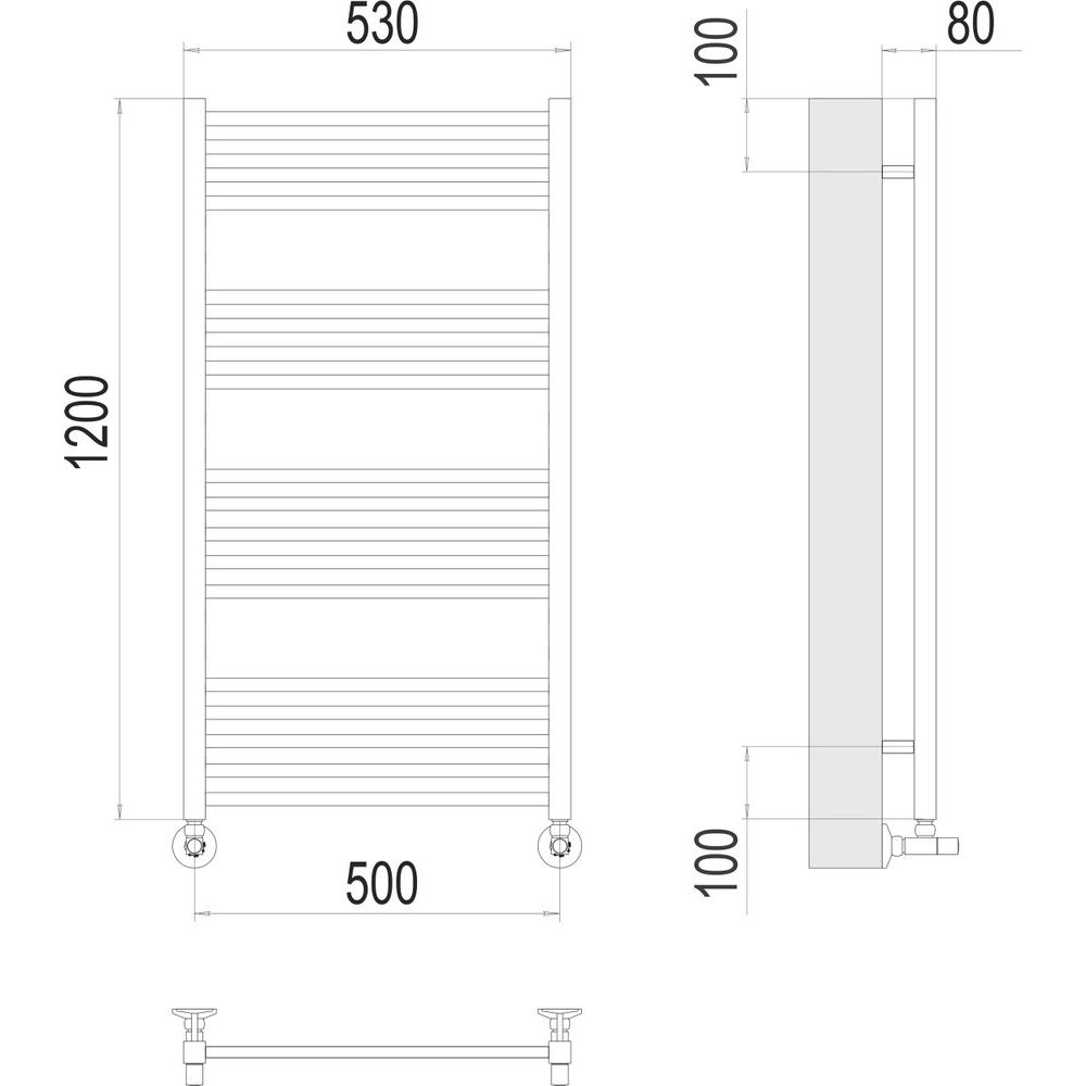 Полотенцесушитель имеет размеры 53x120 см с межосевым расстоянием 50 см, что идеально подходит для различных ванных комнат. Он способен обогреть площадь до 5.5 м², создавая тёплую атмосферу и быстро высушивая полотенца. Конструкция подвесная, что позволяет сэкономить пространство и дополнительно декорировать интерьер. В комплекте поставляются все необходимые крепления и отражатели для установки.